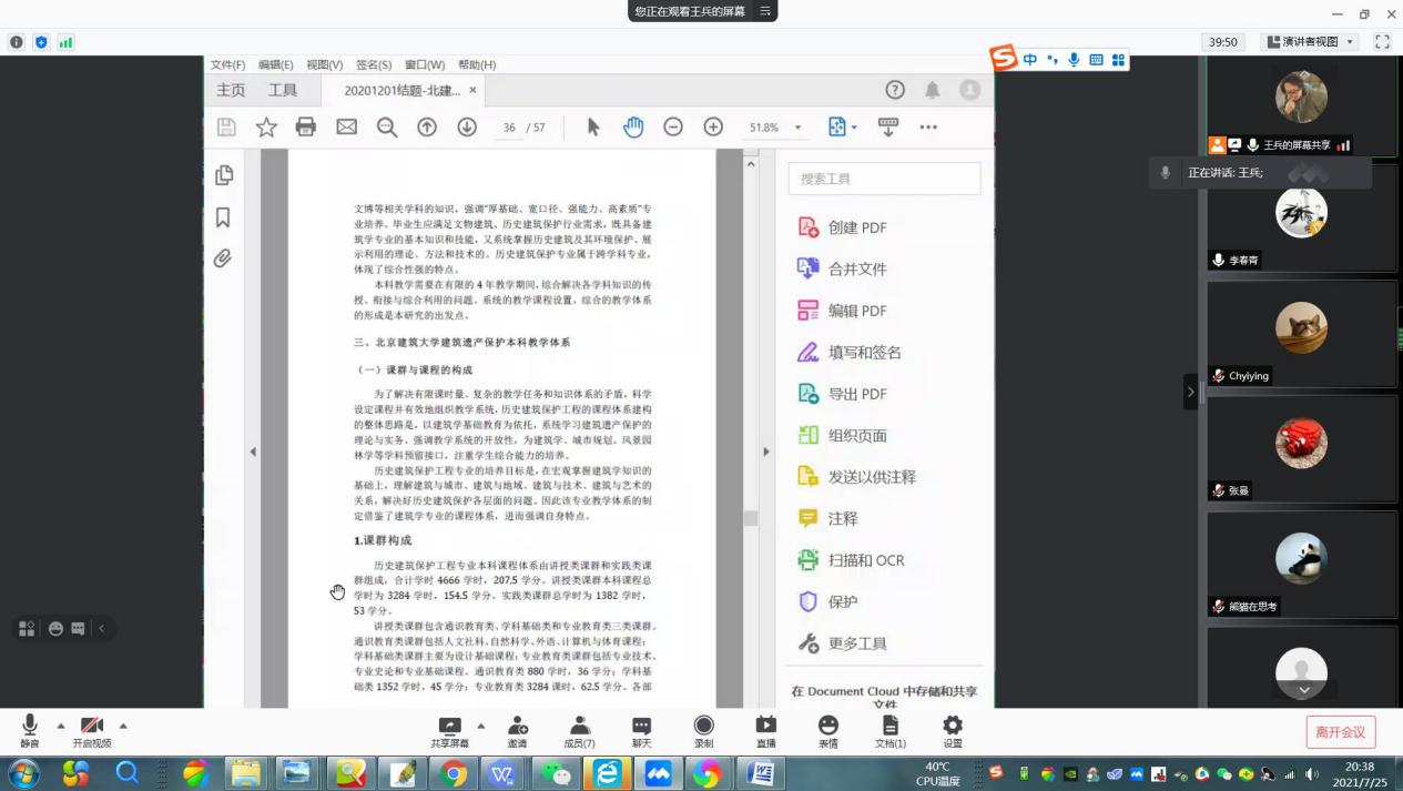 历史建筑保护系召开了历史建筑保护工程专业主干设计类课程负责人教学网络研讨会议,会议由系主任王兵主持,李春青副院长和该系杨一帆、马全宝、齐莹、张曼几位老师参加了会议,会议历时2个半小时。