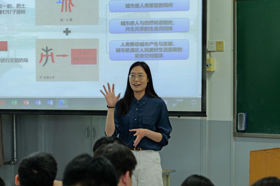 张莹老师为同学们讲授理论课。张老师从马克思主义的视角对“人民城市”理念进行了全面解读。她指出“人民城市人民建、人民城市为人民”是马克思主义人民观在城市建设领域的具体体现,体现了以人民为中心的发展思想。让同学们深刻领会到“人民城市”的重要思想的科学内涵。张老师还强调了大学生在城市建设中的责任和担当,希望大家恪守“坚定“有理想”之光,恪守“敢担当”之心,锤炼“能吃苦”之力,保持“肯奋斗”劲头”的精神。