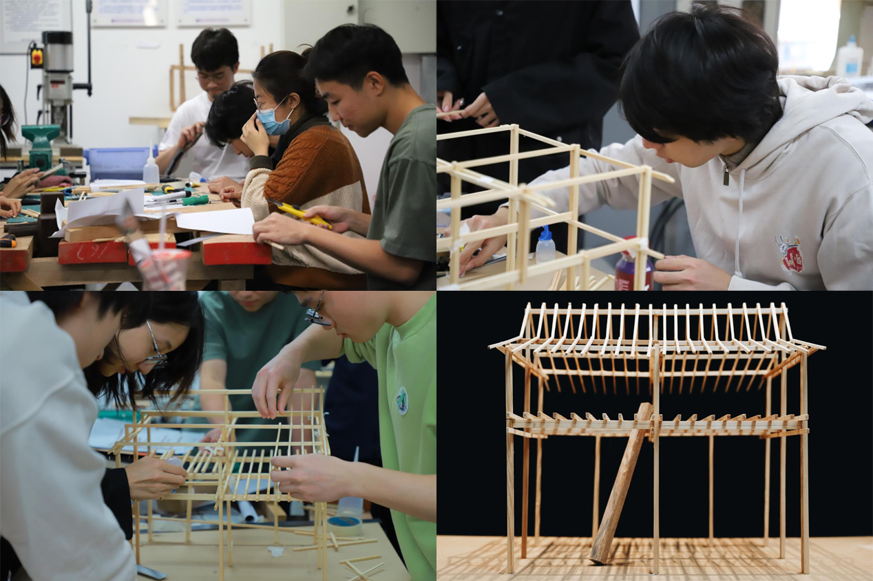 加工构件的同时,手工模型制作组也如火如荼的进行模型推敲,以加深对方案细节的认识,并为后来的真实搭建提供参考。