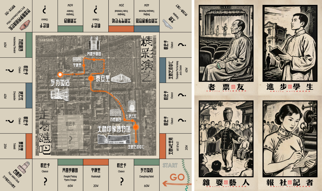 与此同时,天桥街道责任规划师团队、东方饭店、行走城市研究组共同研发了“觉醒年代-精彩演艺-城市烟火”三条Citywalk剧本杀线路,并将陆续邀请社会各界人群深入天桥历史文化街区、香厂新市区历史文化街区、天桥演艺区,通过文化探访和剧情演绎等趣味形式,沉浸式感受天桥文化的独特魅力。
