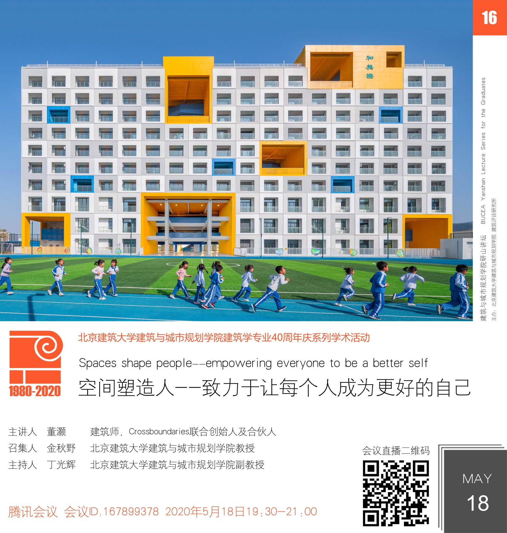 “研山讲坛”创办于2019年9月,是建筑学院以研究生交流为目的的系列学术活动,活动由建筑学院常务副院长金秋野教授召集。学术活动主要采取讲座、交流形式,邀请国内外知名建筑学者和一线建筑师,分享研究成果、实践作品以及设计思想,促进在校研究生开阔视野、树立职业目标,搭建具有北京建筑大学特色的研究生学术交流平台。2020年是北京建筑大学建筑学专业创办40周年,“研山讲坛”作为“40周年庆系列学术活动”的重要内容之一,也将不断探索完善,发挥其学术号召力。