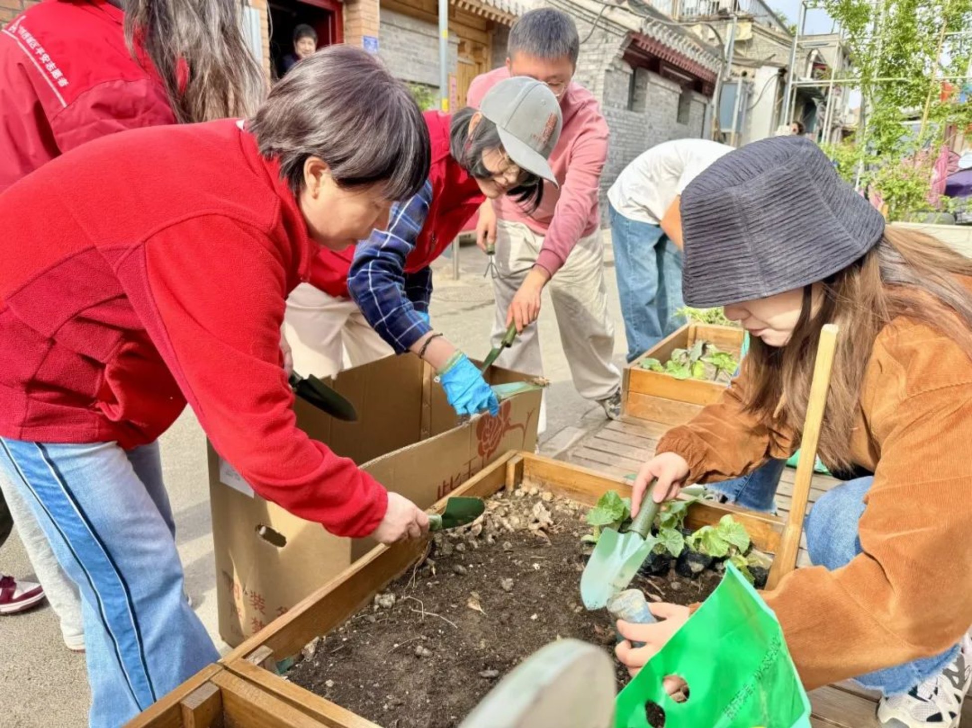 此次支部共建活动共栽种蔬菜幼苗40余株,补种花卉50余盆,惠及三个胡同的百余户居民。不仅是一次校地协作、社区参与的生动实践课,更是一种以党建为引领、以设计为手段、以居民为主体的基层共治模式探索。大学生党员们在实践中提升了专业素养与社会责任感,居民们在参与中增强了对社区的认同感与归属感。未来,北京建筑大学建筑学院与北京服装学院将继续携手天桥街道、留学路社区,深入推进“党建引领、校地融合、精细治理、跨界合作”的共建机制,让"共建、共治、共享"的理念在基层治理中结出更多硕果。