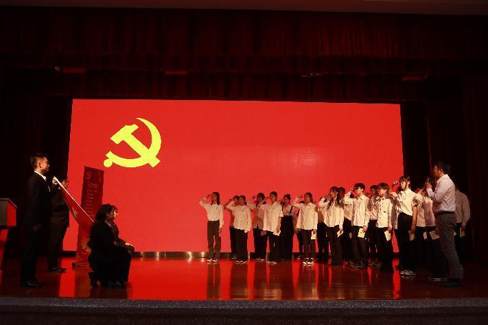 院长穆钧带领全体新接收预备党员进行入党宣誓。