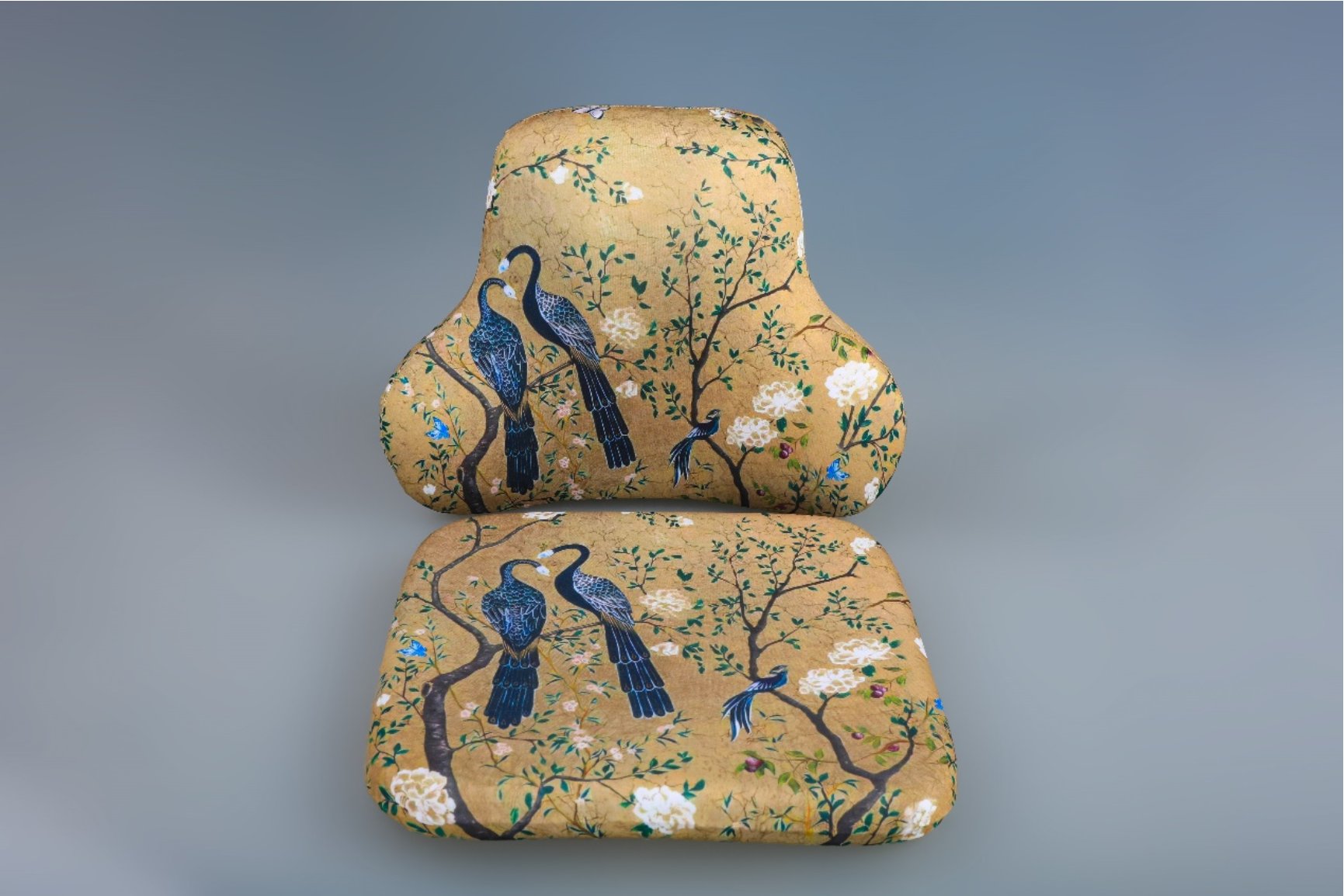 新中式花鸟纹记忆棉坐垫与靠腰实物