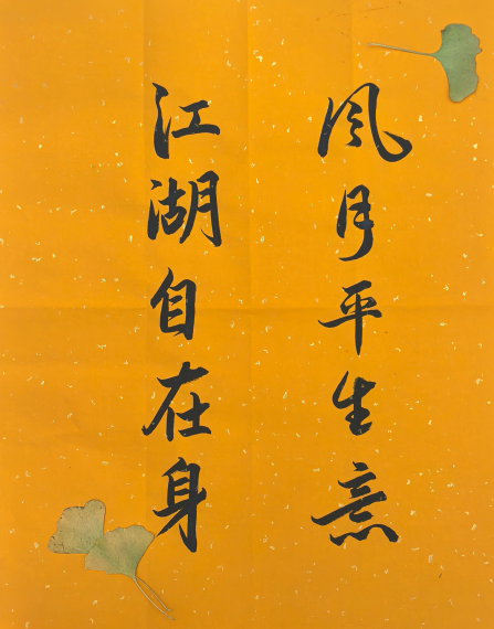 活动筹备阶段,书法社的同学们挥毫泼墨,将“心静则明”“相信自己”等温柔寄语书写在橘黄宣纸上,或娟秀灵动,或苍劲有力,为活动奠定了雅致基调;心联会的同学们则收集梧桐、银杏、红枫等各色落叶,与书法作品一同装点场地