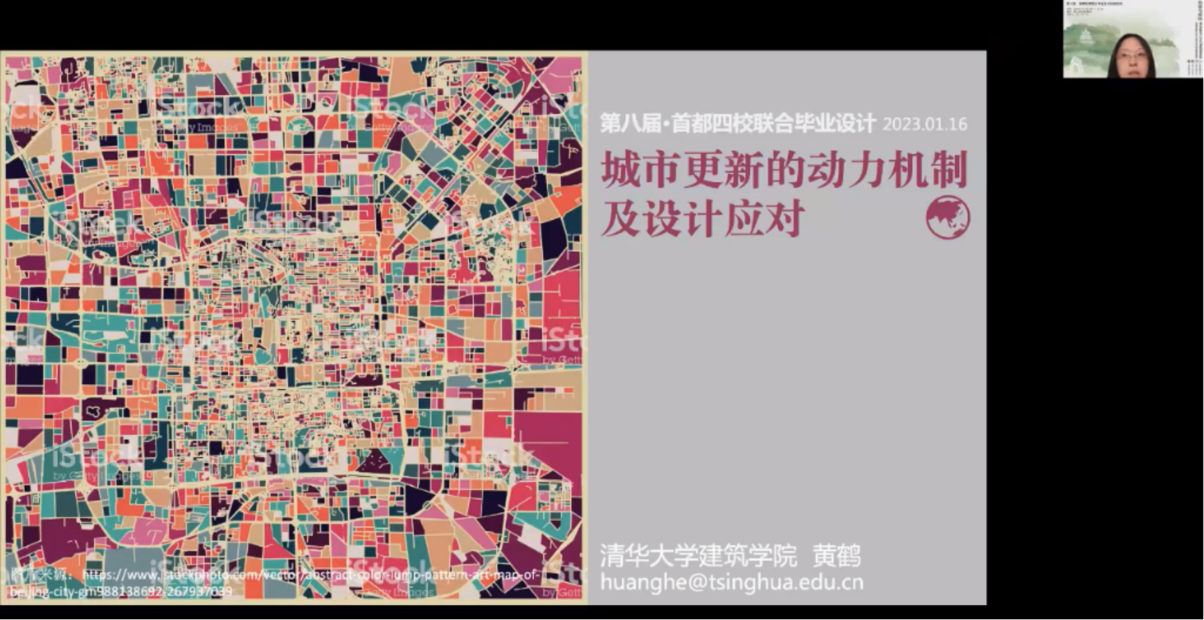 其次,清华大学建筑学院副教授,城市规划系副系主任,中国建筑学会城市设计分会副秘书长,《城市设计》杂志副主编,北京城市规划学会城市更新与规划实施专业委员会黄鹤主任,为会议做“城市更新的动力机制及设计应对”的专题讲座。黄鹤主任从教学角度出发,引导大家基于既有发展的研判,深刻理解城市更新工作,这一思考也是利益分配的考量。基于此,大家运用擅长的规划设计手段,塑造融合本土特色和面向未来创新发展的人居环境。至此,第八届首都四校联合毕业设计启动仪式圆满结束。本次教学活动充分展示了斗地主游戏 建设高水平特色型大学的教学改革内容和力度,也是对斗地主游戏 提出的“三师培养”和“三规进课堂”的践行。