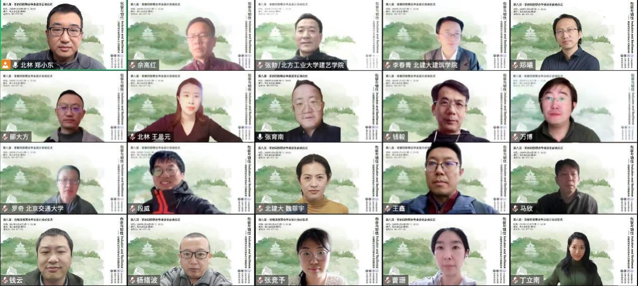其次,各校带队老师针对毕设题目进行解析。此次联合毕业设计以“包容与韧性——后疫情时代北京城乡空间更新探索”为主题,分析北京当前、后疫情时代的城市问题,为未来建设包容与韧性的城市空间提出规划设计策略。围绕这一主题,四校指导教师分别选择不同地块,以不同视角提出不同规划设计内容,为未来服务首都高质量发展出谋划策。此次联合毕业设计的题目包括:“海淀清河滨水空间更新设计”;“丽泽商务区D片区城市设计” ;“北京通惠河CBD段及周边空间更新设计研究”;“天坛地区西草市红庙街区(院落)保护与更新设计”四个题目。