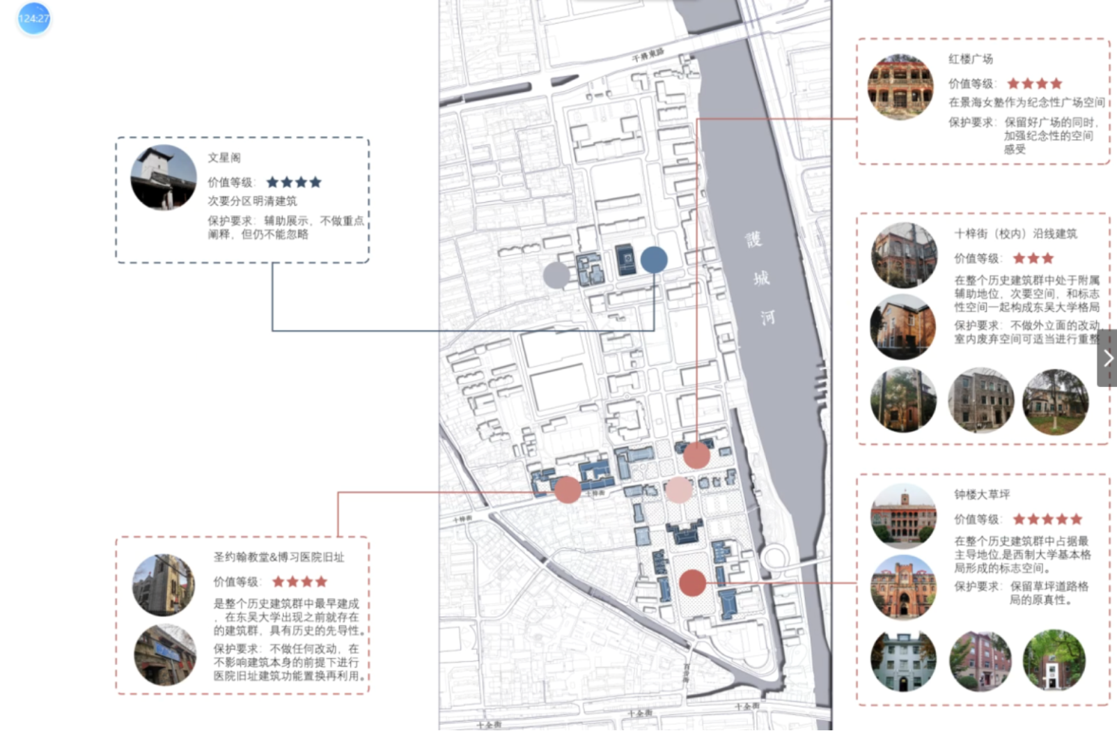 六所参加院校教授代表作为专家评委交叉分布,组成三个联合专家评审团,对各校同学的中期成果进行了认真细致的考查、点评。本届建成遗产领域联合毕业设计以“古今孙堂、触情平江”为主题,以苏州原东吴大学国保建筑孙堂及历史街区平江路核心段为毕业设计选题,整合南北教学资源,在疫情期间突出线上交流知识分析,对遗产保护领域的高校教学实践改革进行了创新探索。联合毕业设计将继续秉承优良传统,坚持统筹协调、创新合作、完善平台,努力为遗产保护高等教育的创新发展做出更大的贡献。