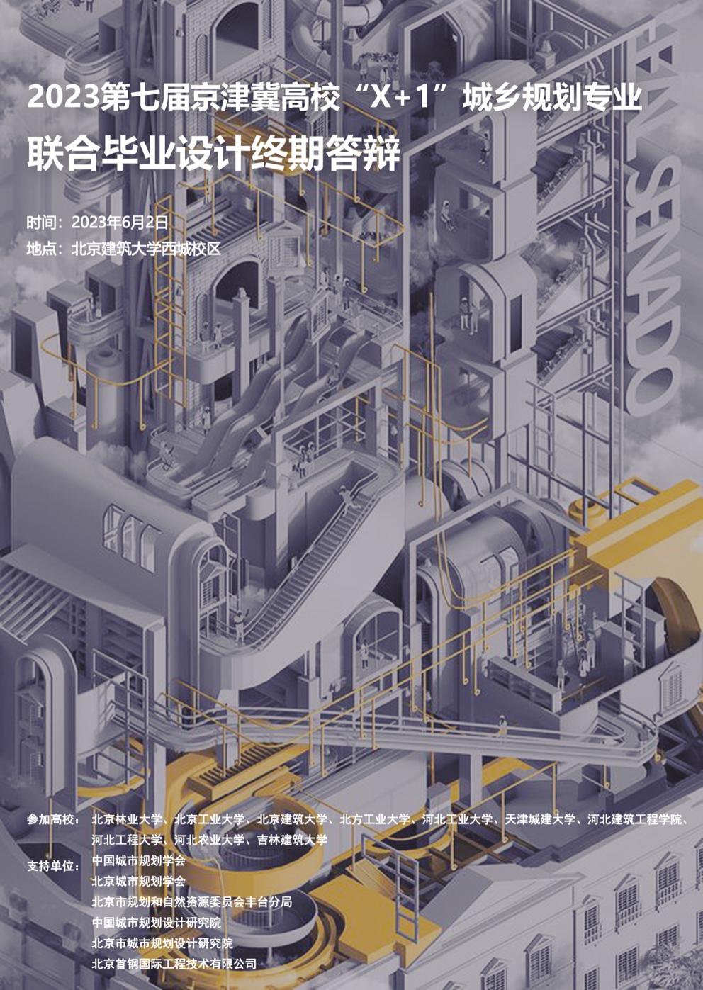 2023年6月2日,2023 第七届京津冀高校“X+1”城乡规划专业联合毕设终期答辩在北京建筑大学圆满举办。北京林业大学、北京工业大学、北京建筑大学、北方工业大学、河北工业大学、天津城建大学、河北建筑工程学院、河北工程大学、河北农业大学、吉林建筑大学10所来自京津冀地区的高校毕业设计团队参加了此次汇报。本届联合毕设由中国城市规划学会、北京城市规划学会、北京市规划和自然资源委员会丰台分局以及中规院(北京)规划设计有限公司、北京市城市规划设计研究院、北京首钢国际工程技术·有限公司提供学术支持。