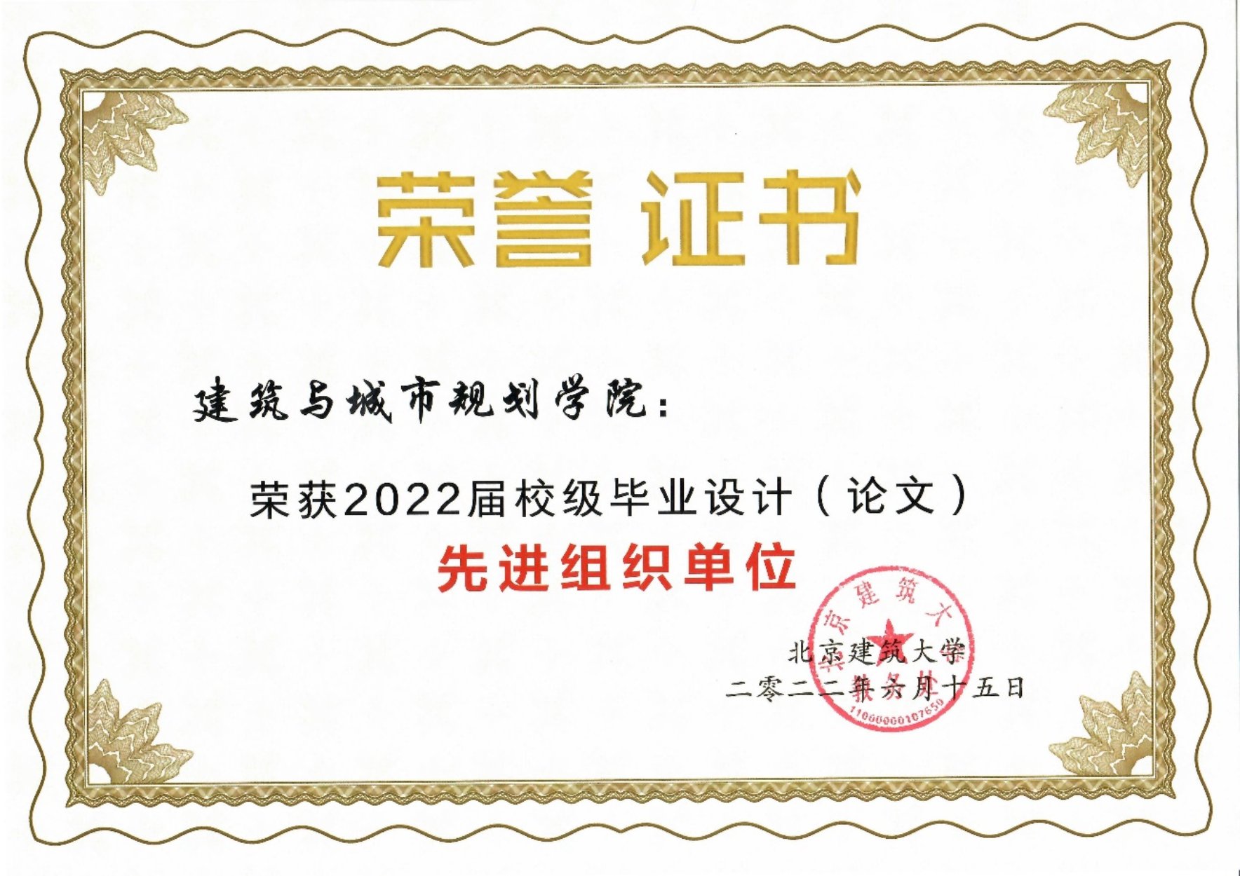 建筑学院获得2022届校级毕业设计先进组织单位