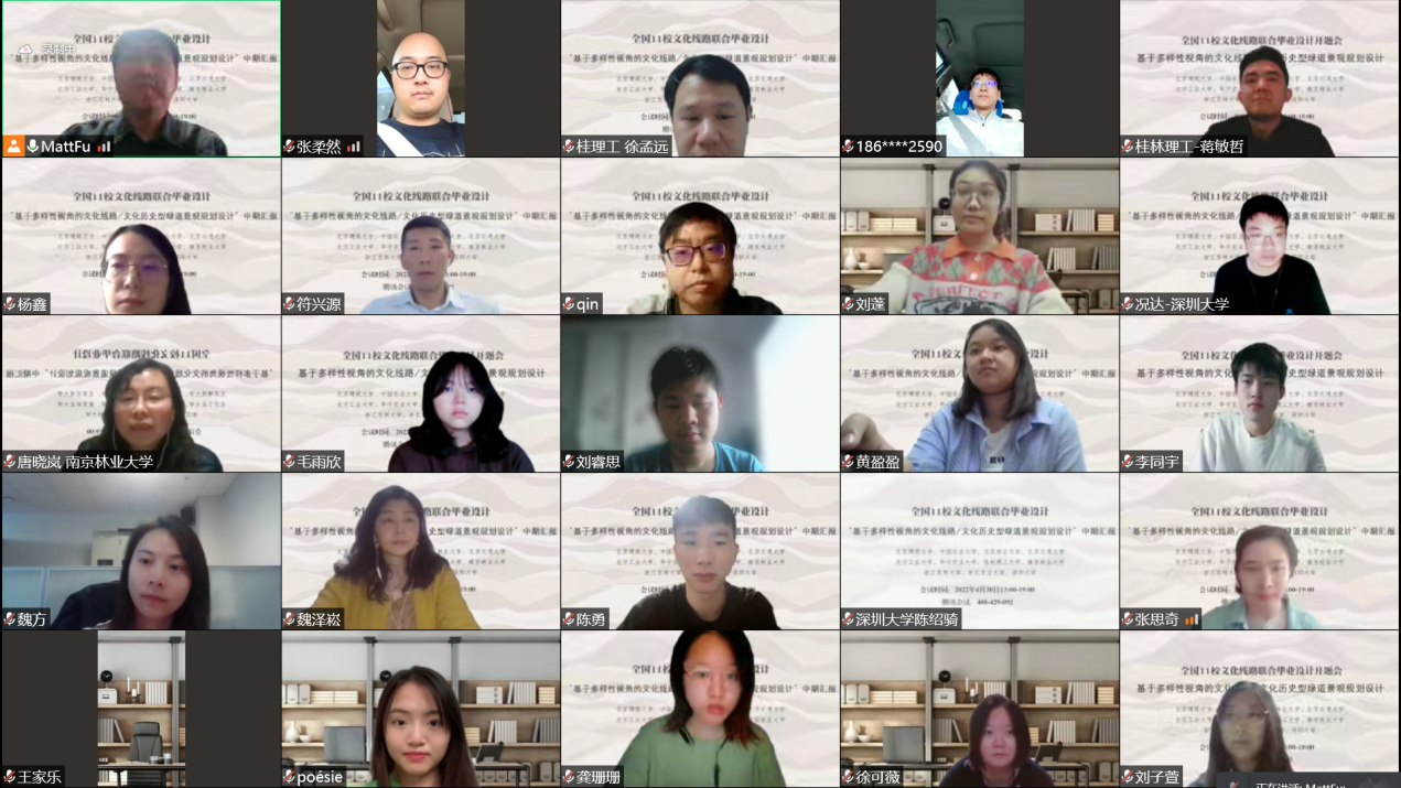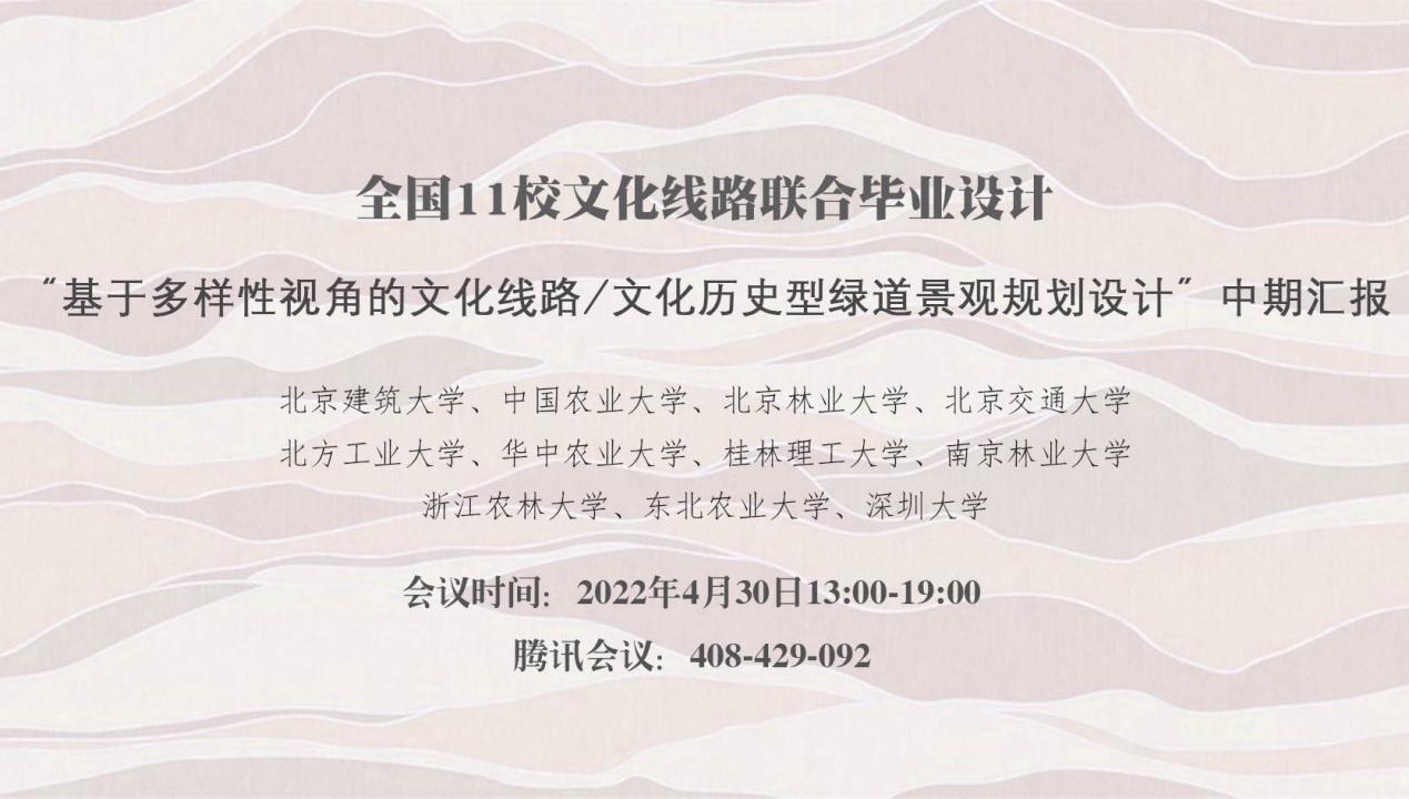 2022年4月30日下午,全国11校文化线路联合毕业设计中期汇报会顺利举行,主题为“基于多样性视角的文化线路/文化历史型绿道景观规划设计”,由北京建筑大学、中国农业大学、北京林业大学、北京交通大学、北方工业大学、华中农业大学、桂林理工大学、南京林业大学、浙江农林大学、东北农业大学、深圳大学等11所高校联合举办,由斗地主游戏 斗地主游戏-单机斗地主下载 承办。来自全国11所高校的师生85人相聚云端,通过腾讯会议参加了汇报会,另有40多人通过腾讯直播观看了汇报。