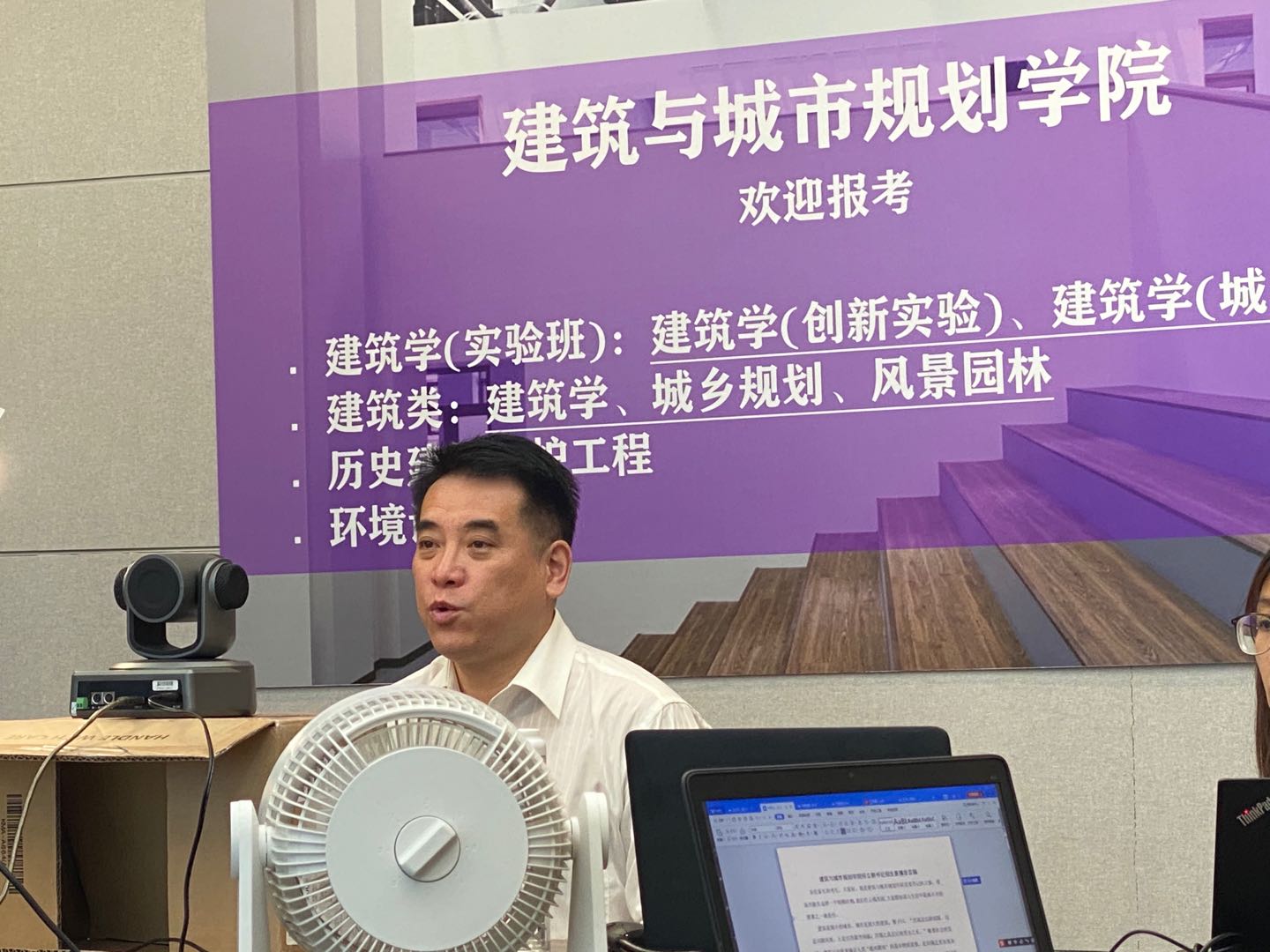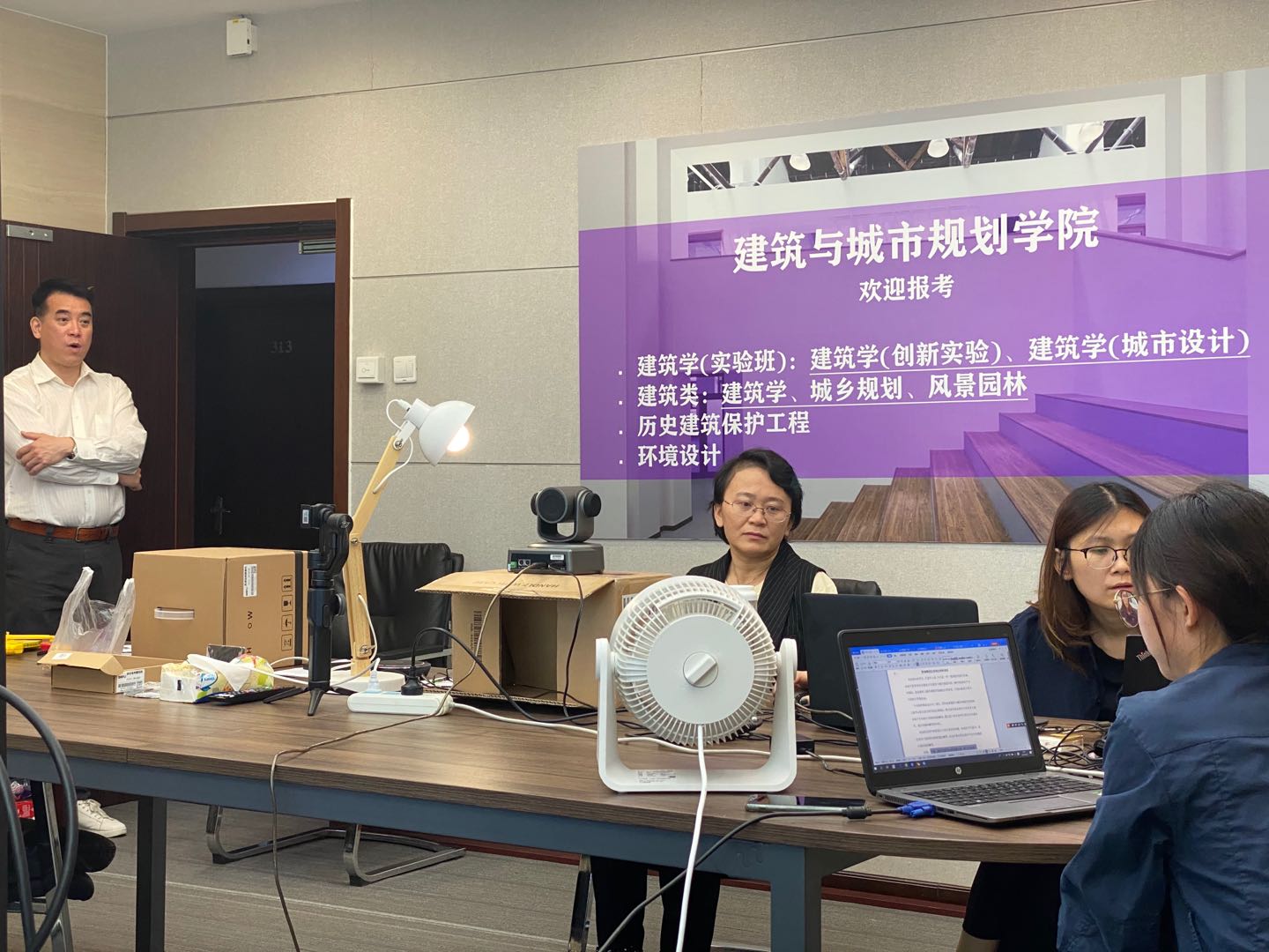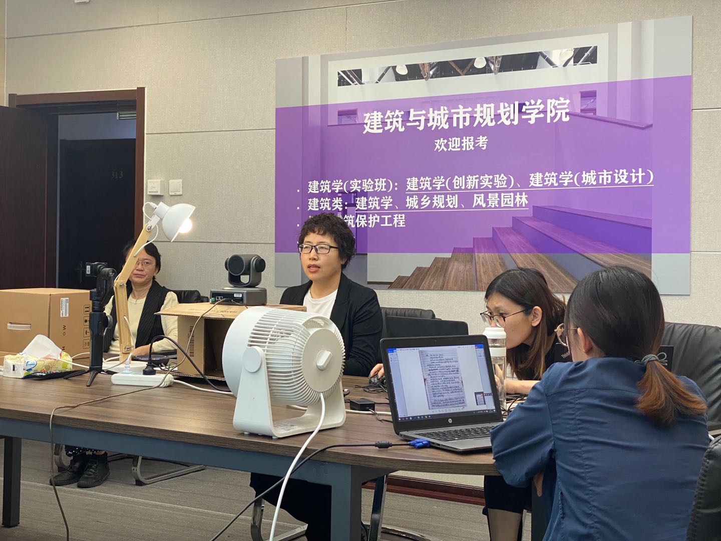 为了本次在线直播,建筑学院在学校教务处的指导下,在2个月的准备期间,多次召集郝晓赛、王韬、荣玥芳、张振威、王兵、张笑楠几位专业负责人,分析大类招生的特点,为本专业撰写招生简章,历经多次修改,逐字逐句修订;同时确定各专业直播主讲教师,修改直播脚本、熟悉演练招生信息平台等工作。