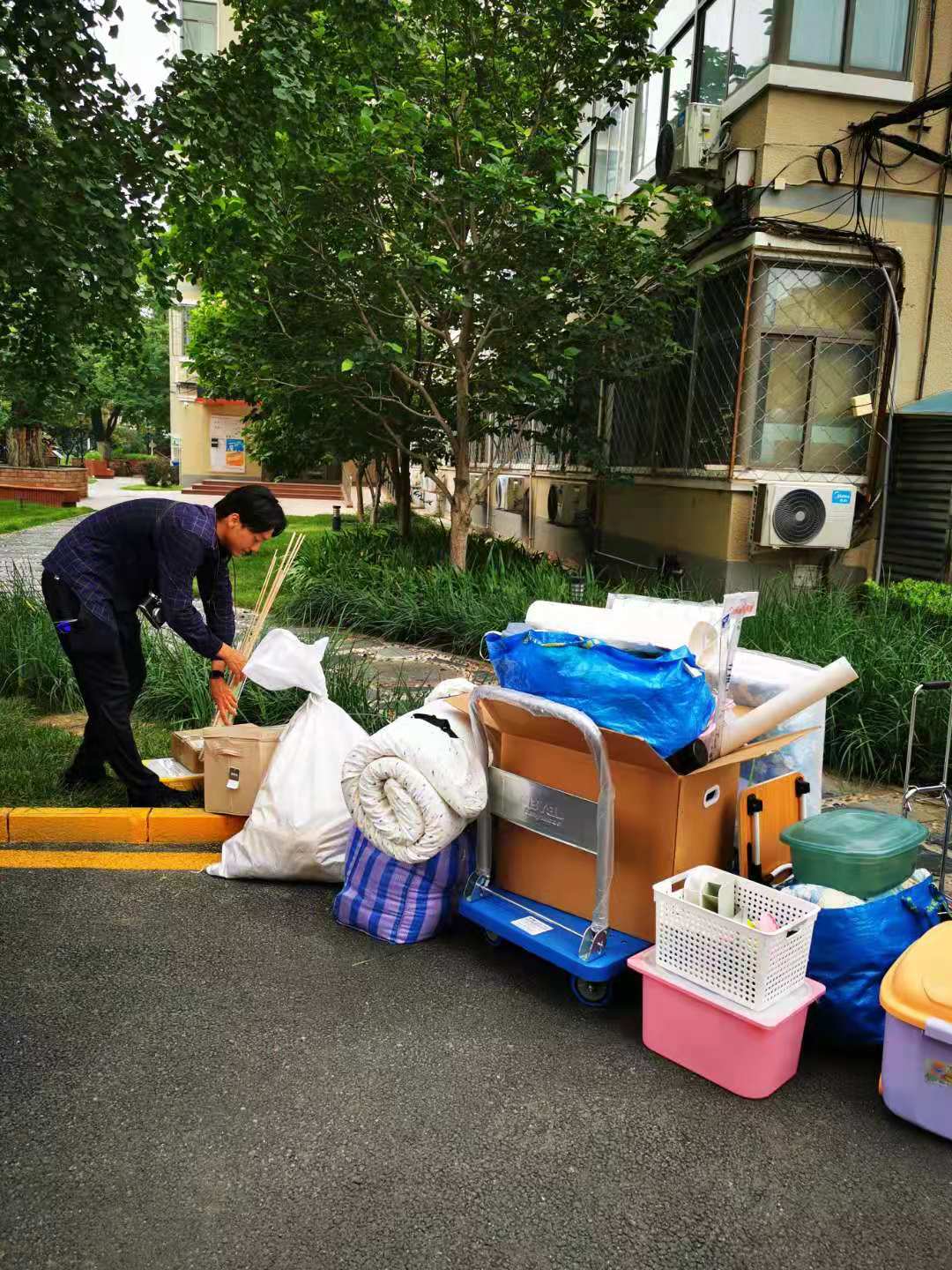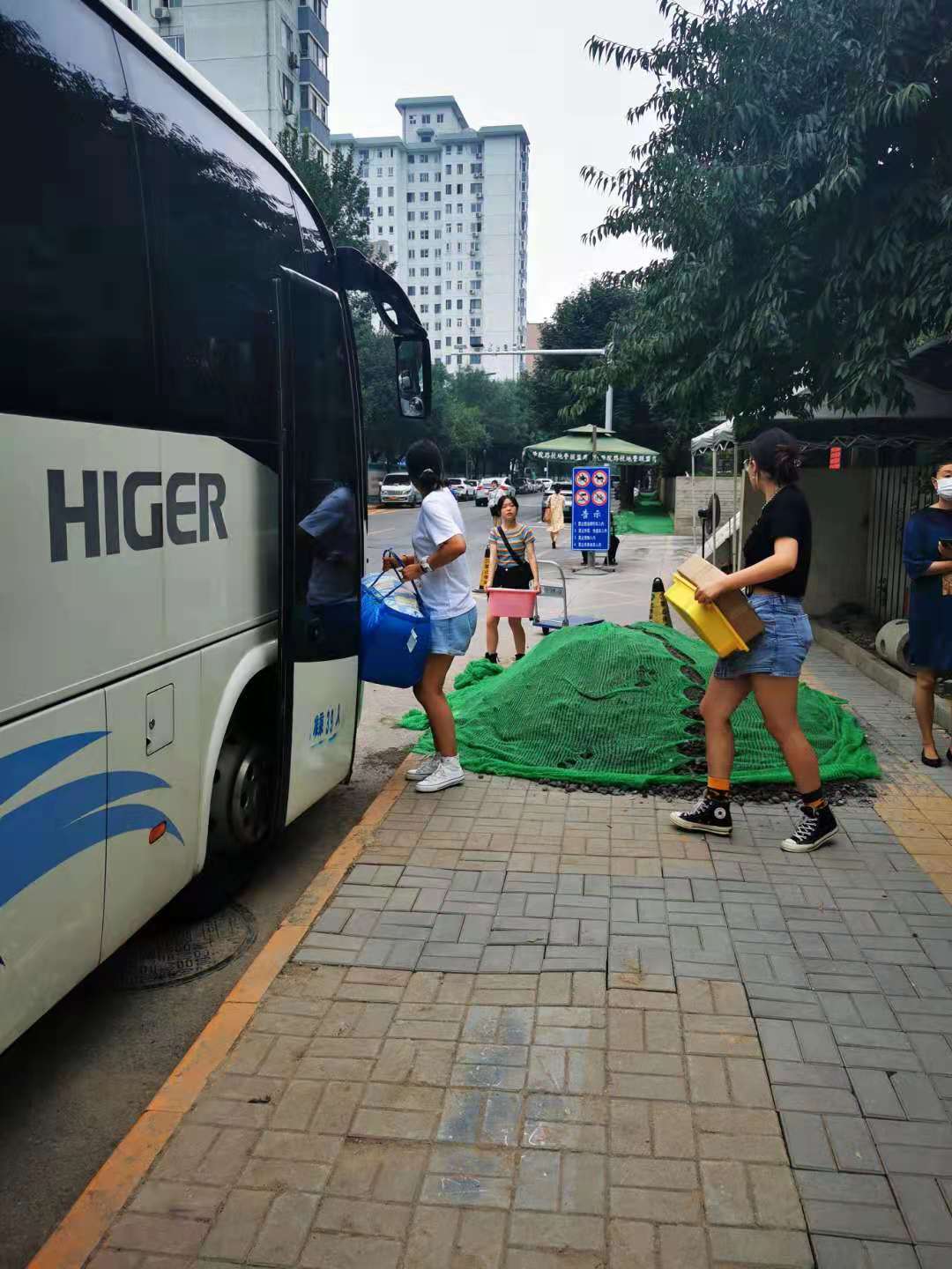 陈欣然等7名同学在只有一辆拖车的情况下,克服困难相互协助,在刘老师与宿管老师帮助下至中午完成宿舍安置。准备迎接9月份即将开始的北京建筑大学两年的学习与生活。