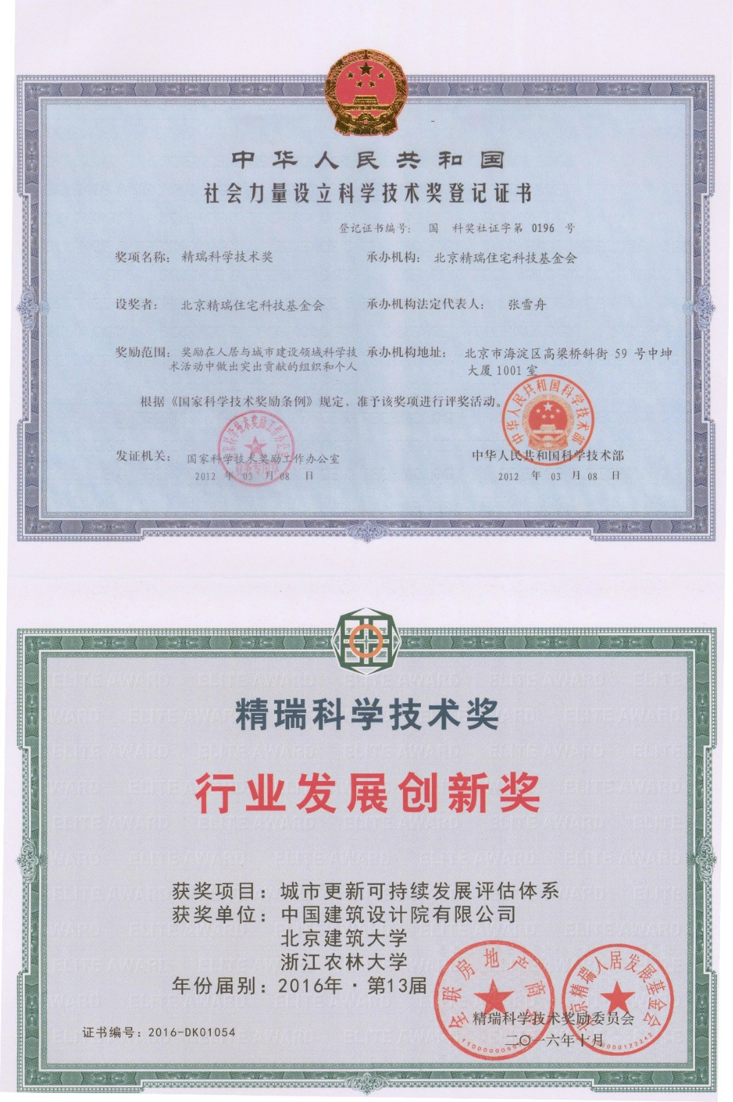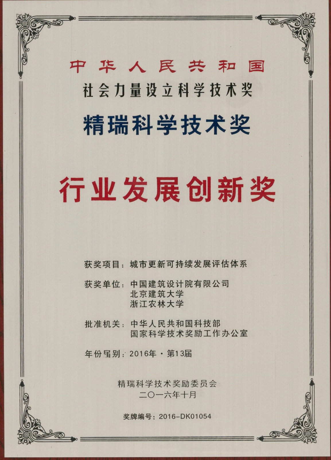2016年10月19日,第13届精瑞科学技术奖颁奖典礼在北京富力万丽酒店隆重举行,斗地主游戏 刘剑锋副教授与中国建筑设计院有限公司、浙江农林大学共同参评的科技成果“城市更新可持续发展评估体系”荣获“行业发展创新奖”。