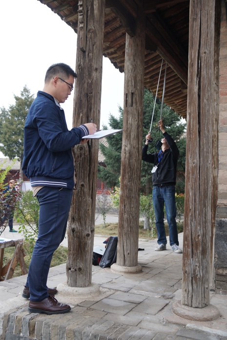 跟随老师参观玉皇阁、释迦寺及关帝庙三座古建筑群,在现场参观和测绘基础知识培训之后,学员分组并于下午开始测绘工作。