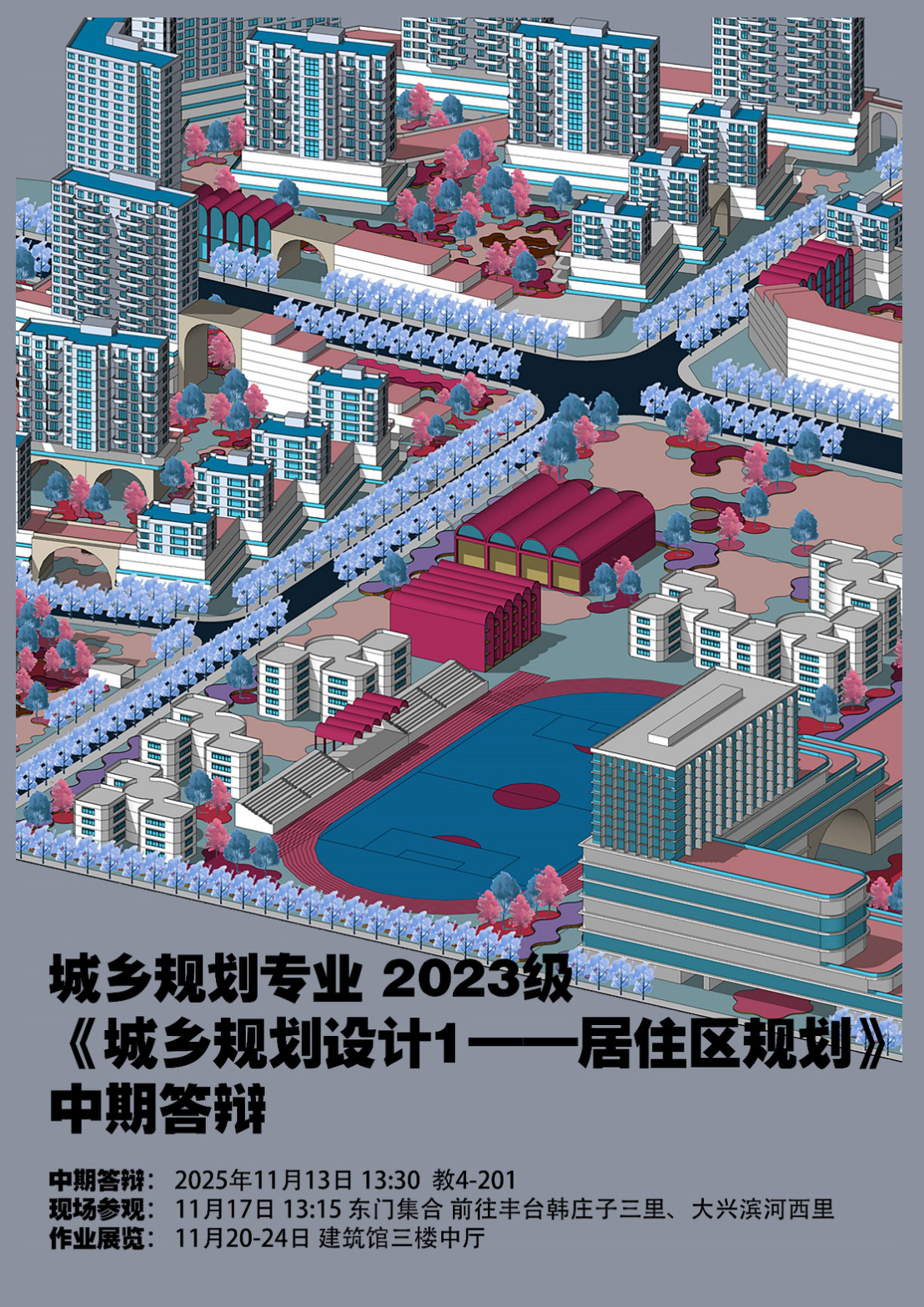 2025年11月13-24日,斗地主游戏 城乡规划系三年级本科生课程《城乡规划设计(1)——居住区规划》中期答辩系列教学活动顺利举办。本次设计课课题主题是《“好房子”背景下的居住小区》,活动特邀了北京万科设计部经理赵欢、中建一局韩庄子三里项目总工程师王志鹏、设计总监马龙飞等校外专家担任点评和讲解嘉宾,从政策落地、技术实施、民生适配等维度为学生作品精准 “把脉”。共分为答辩,参观,展览三个环节。