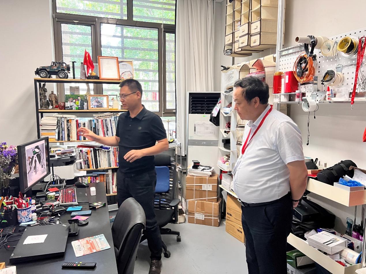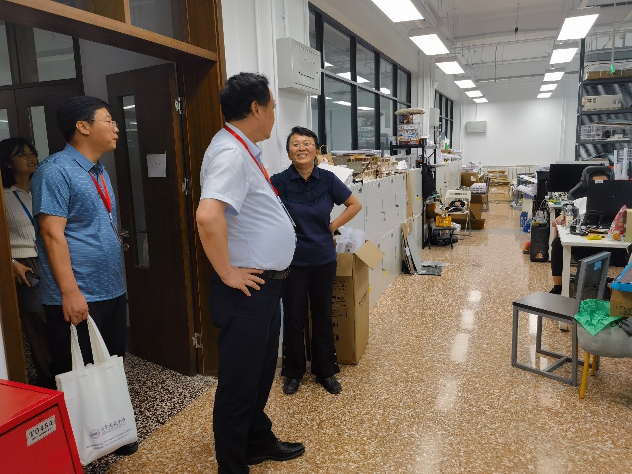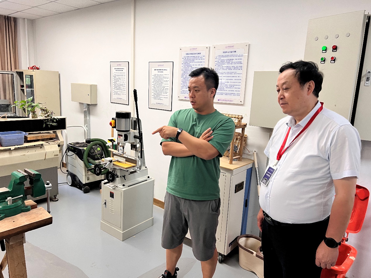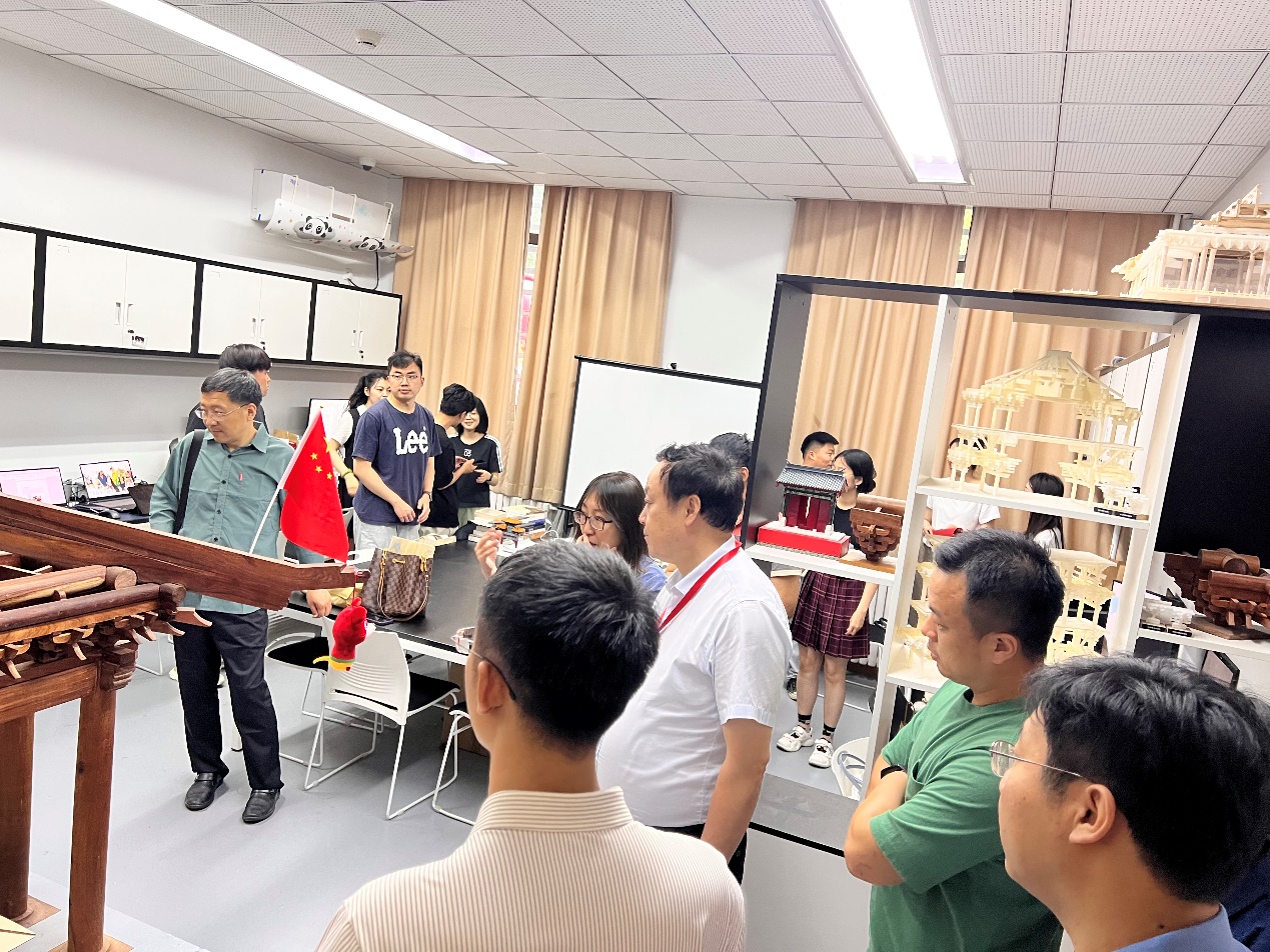 专家组随后参观了建筑学院实验中心,陈玉龙主任介绍了中心各实验室以及开展本科教学活动的情况。专家组最后视察观看了图书馆一层城乡规划、环境设计毕业设计展,并到图书馆二层视察参观了了建筑学院2020级专业教室,询问了有关专业教室使用状况。