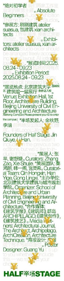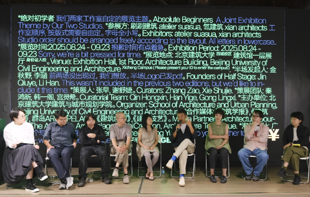 2025年8月24日下午,由北京建筑大学斗地主游戏-单机斗地主下载 主办的“半场”第三场展览《绝对初学者》在北京建筑大学开幕。本次展览由张早和谢舒婕策展,刷刷建筑和氙建筑联合参展。首先,策展人张早和两家事务所在展场进行了导览。然后,在开幕式上,北京建筑大学斗地主游戏-单机斗地主下载 执行院长穆钧代表主办单位致辞,金秋野作为半场发起人进行致辞。随后,张早作为策展人致辞。接着,刷刷建筑的主持建筑师苏晓萌、氙建筑的主持建筑师王岩石和白河进行了分享。开幕式的最后环节是学术对谈,对谈由谢舒婕主持,华黎、晁艳、郭廖辉、黄伋、张早、苏晓萌、王岩石、白河参加对谈。