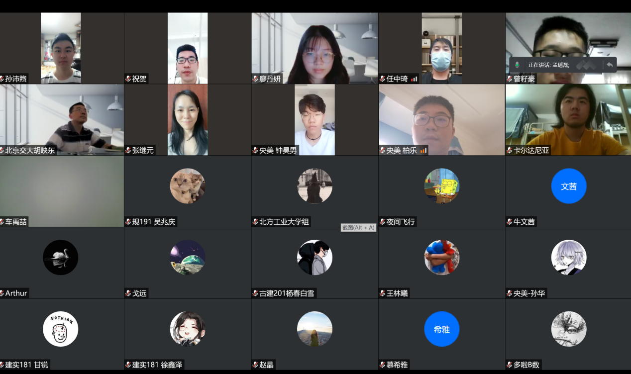 7月21日上午,2021营造大集第二次中期研讨会成功召开。北京建筑大学建筑与规划学院金秋野常务副院长、李春青副院长,“几何 | 游山”出题人王硕,北方工业大学、北京工业大学、北京交通大学、北京建筑大学、北京林业大学、清华大学、中央美术学院(按名称拼音首字母排序)七所高校参赛师生代表,受邀参加了本次研讨会。本次会议线上召开,师生们互动气氛热烈。