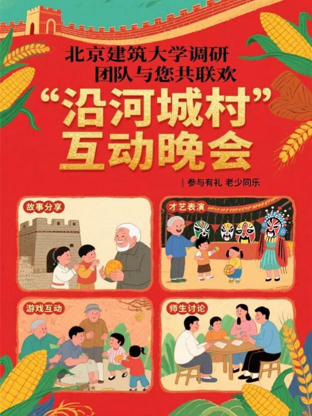 沿河城古堡自明代以来由村民世代守护。此次实践团师生以“讲故事、搭桥梁”的方式走进古堡社区。在“文化联欢”活动中,村民与师生共同开展手工制作与墙绘手绘,一同演唱原创歌曲与传统戏曲,共同讲述古堡故事、重温长城记忆。古堡在歌声、画笔与交流中焕发新的活力,也让村民更加意识到自身的日常生活与口述故事,正是长城文化与社区记忆的重要组成部分。