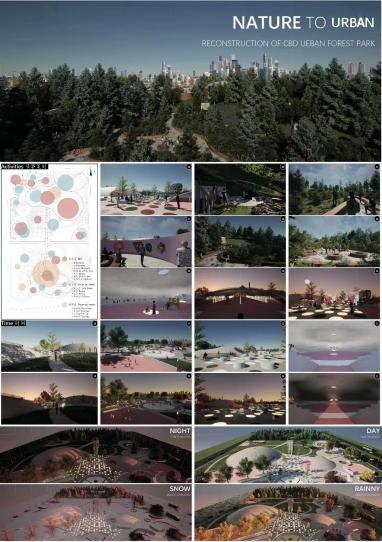 作品简介:在当今社会中,人们总是把自然破坏之后才意识知道自然的重要性,在CBD场地中更是如此,因此,如何让人们意识到自然,以及在二元对立的视角下呈现自然和城市的冲突成为本课题最重要的设计依据。