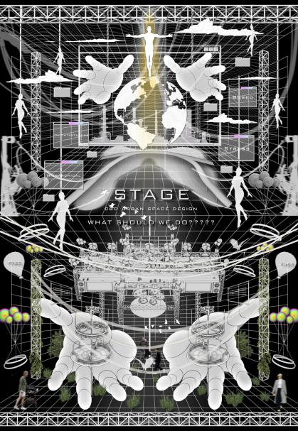 作品简介:从背景本身入手,分析场地背后的故事,从阶级问题引出后续设想,制造混乱与冲突,矛盾与问题。通过娱乐化的设计手段赋予场地情感,在场地中心构造半永久装置舞台,邀请所有人,包容所有人,致力于让每个人在此空间找到属于自己的舞台。