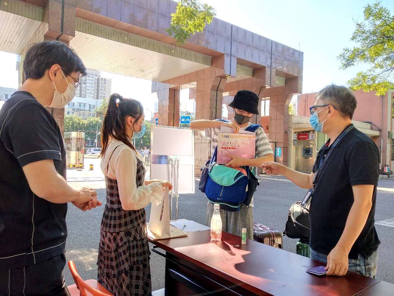 9月8日上午8:30,北建大建筑学院迎来了2020级建筑学、城乡规划专业双培新生。建筑系建筑学双培计划负责人商谦,学院教务办公室刘志刚、学院学工办公室陆冰清3位老师以及学校教务处老师在西城校区教1楼前给新生办理入学手续。建筑学院还邀请2017级双培生给新同学介绍了她们在清华大学建筑学院学习、生活的经验。之后,学校教务处那威处长在教1-204教室给双培新生做了新学期动员。