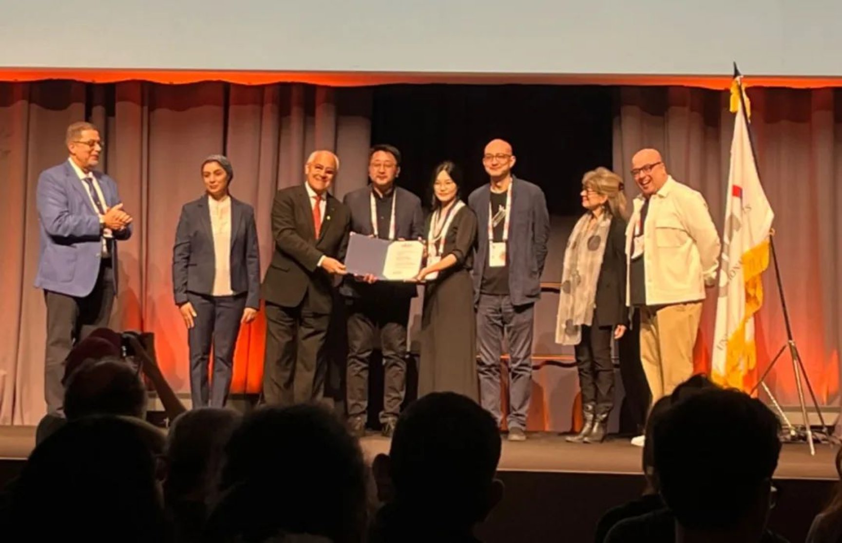 国际建协主席胡赛·路易斯(José-Luis Cortès)向斗地主游戏 团队颁发获奖证书