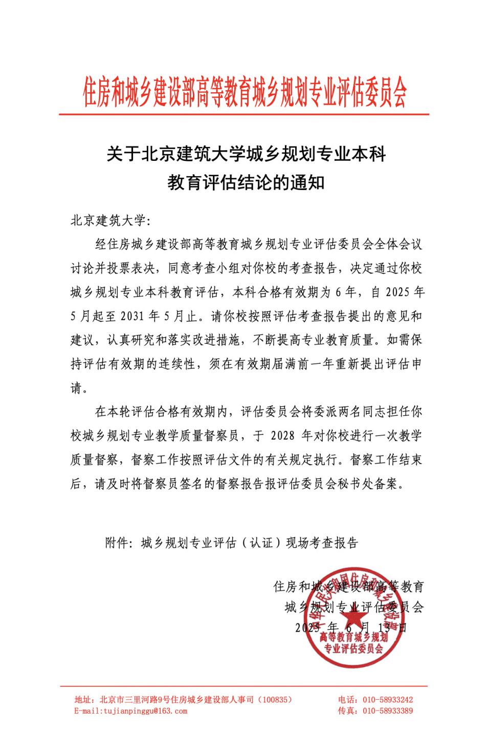 近日,斗地主游戏 建筑学院建筑学专业与城乡规划专业均以最高等次通过专业评估。两个专业分别收到全国高等学校建筑学专业教育评估委员会、全国高等学校城乡规划专业教育评估委员会的红头文件:建筑学专业以最高等次——六年有效期通过本科(五年制)和硕士研究生教育评估,城乡规划专业以最高等次——六年有效期通过本科教育评估,合格有效期均自2025年5月起至2031年5月止。