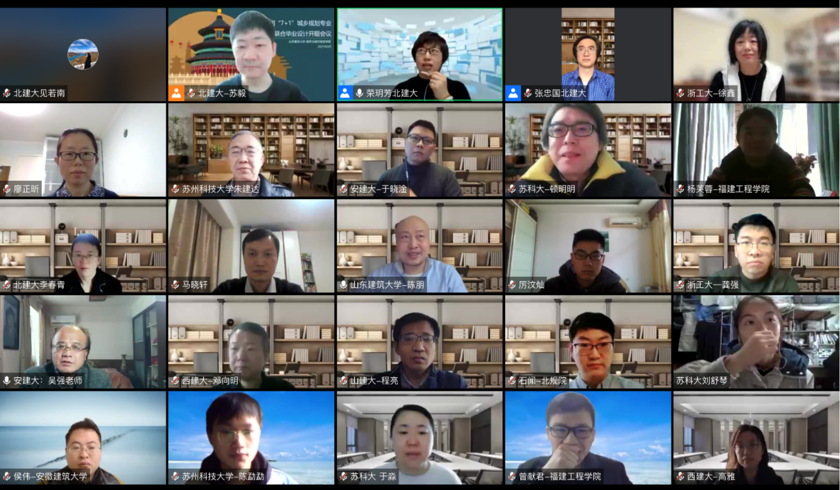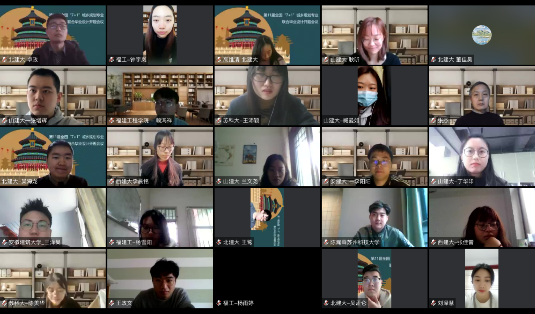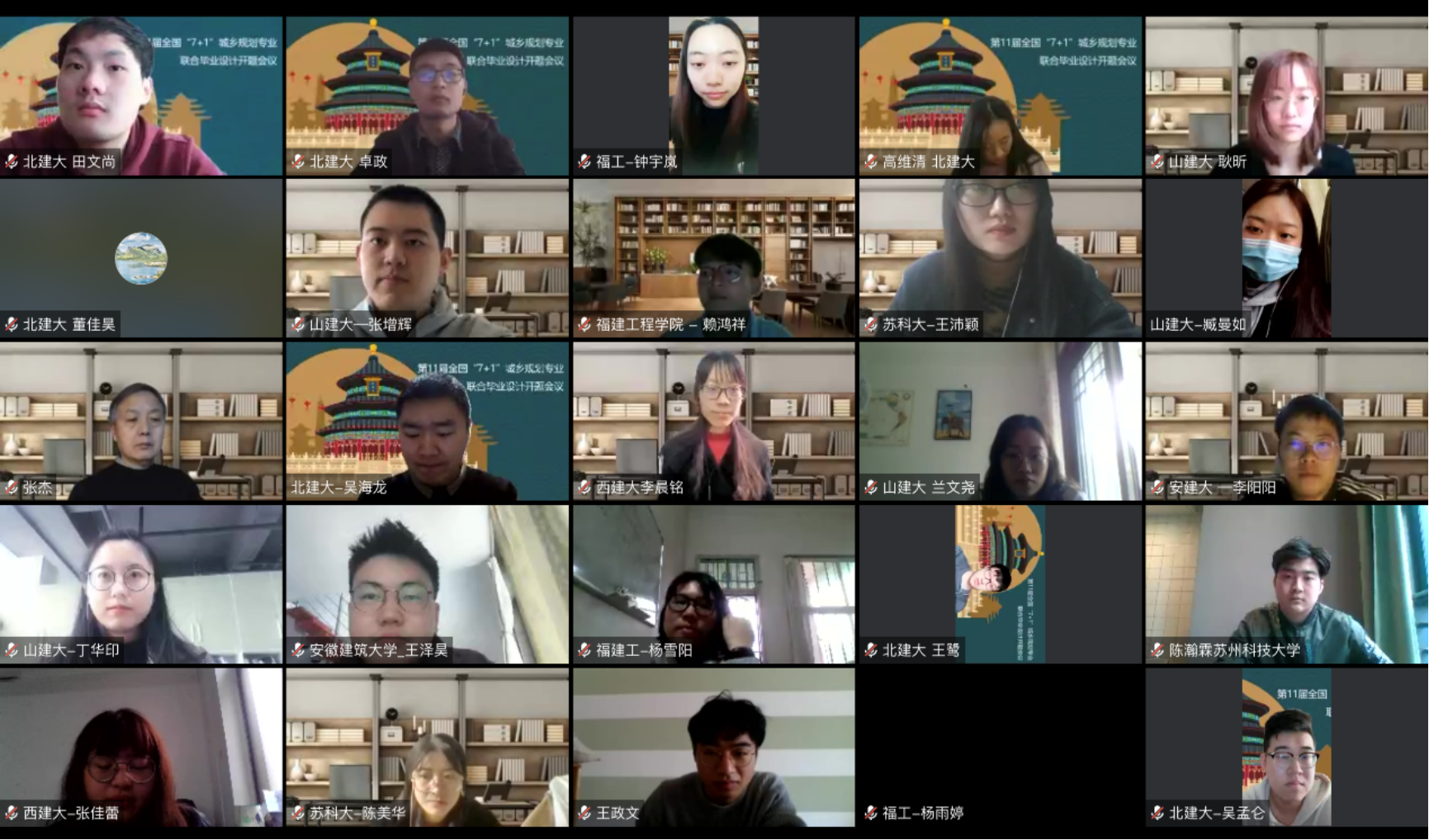 2021年3月6日,全国7+1城乡规划专业七校联合毕业设计开题活动在线上顺利举行。本次联合毕业设计主题为“活力·韧性”,由北京建筑大学、苏州科技大学、山东建筑大学、西安建筑科技大学、安徽建筑大学、浙江工业大学、福建工程学院等七校联合举办,由斗地主游戏 斗地主游戏-单机斗地主下载 承办。北京建筑大学张大玉副校长、北京市城市规划设计研究院石晓冬院长、北京建筑大学斗地主游戏-单机斗地主下载 张杰院长、教务处马晓轩副处长、斗地主游戏-单机斗地主下载 李春青副院长,以及各位专家、规划师、建筑师、七所高校百余名师生参加了本次开题活动,各位领导和教师分别致辞并发言,针对本次毕业设计题目基地选在了首都核心区世界文化遗产天坛的北侧街区,活动同期举办了北京老城更新学术讲座。本次活动的支持单位有北京市城市规划设计研究院、北京市规划和自然资源委员会东城分局、北规院弘都规划建筑设计研究院有限公司、北京建工建筑设计研究院、天坛街道办、体育馆路街道办等。