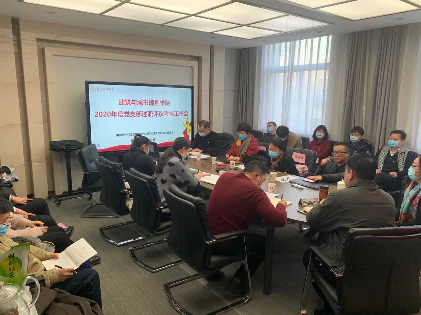 在西城校区办公楼316会议室举办2020年度党支部书记抓党建述职评议工作会。党校常委副校长程士珍,建筑学院全体党委委员、专职组织员、各党支部书记参会,会议由学院党委副书记王秉楠主持。