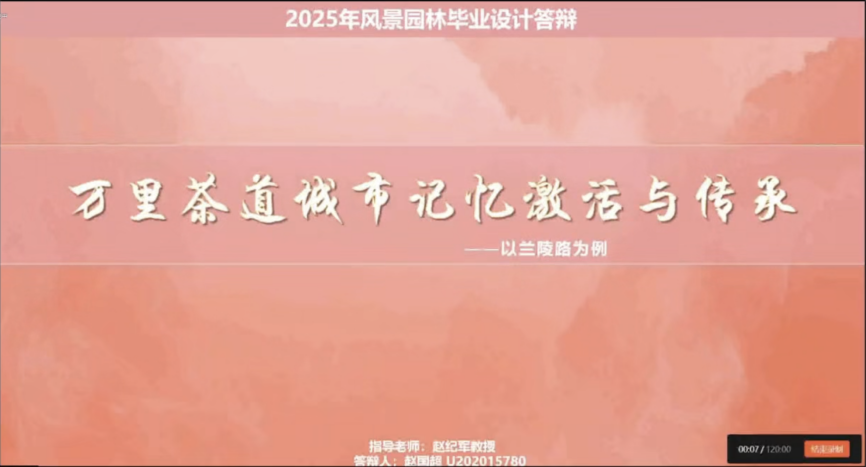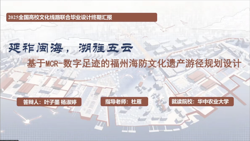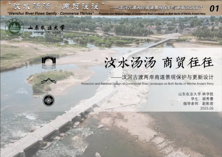 第四组汇报由华中农业大学杜雁副教授主持,参与汇报的学生来自深圳大学、东北农业大学、华中农业大学、山东农业大学,各组同学分别围绕《问潮·答岸——Nbs视角下赤潮治理驱动的红树林文化景观设计》、《万里茶道汉口段城市记忆激活与传承策略——以兰陵路为例》、《哈尔滨松花江北滨水景观廊道景观规划与设计》、《福州海防文化遗产廊道构建与规划设计》、《汶水汤汤 商贸往往——汶河古渡两岸商道景观保护与更新设计》等毕设成果进行了展示汇报。特邀专家王香春、李程成以及指导老师符兴源、赵彩君、刘钊启对各组同学的方案汇报进行了专业点评。最后,山东农业大学赵彩君教授对第三、第四组汇报进行了总结,至此,本次联合毕业设计成果汇报会圆满落幕。