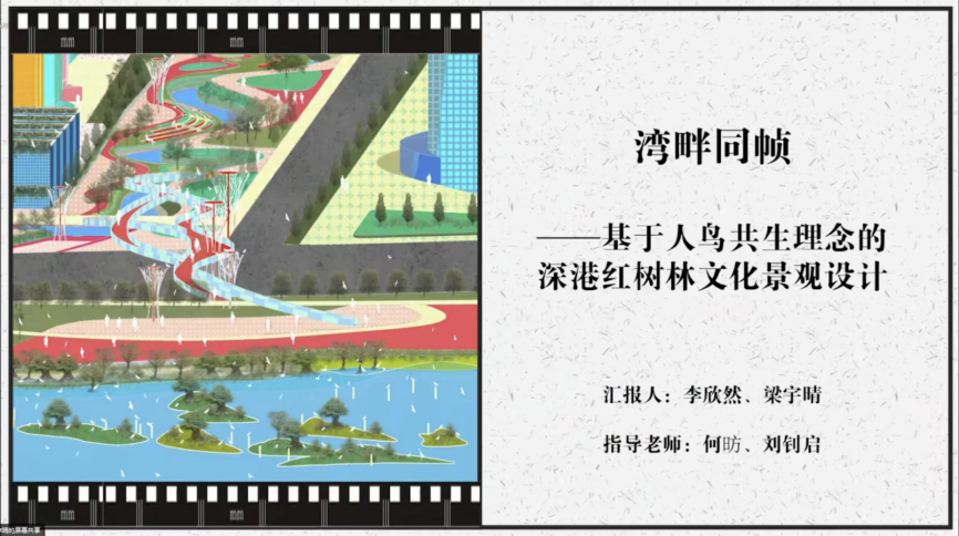 第三组汇报由福州大学张雪葳副教授主持,汇报团队分别来自福州大学、北京建筑大学、深圳大学,学生们依次就《福建省莆田市生态绿心文化线路景观规划》、《古厝匠心·兰水赋新——“产、景、文”一体化视角下莆田陈桥村未来社区规划》、《北京长河景观规划设计》、《湿地编织 边界重建--一国两制视角下的深港红树林公园绿道设计》、《湾畔同帧——基于人鸟共生理念的深港红树林文化景观设计》等毕设成果进行了汇报。特邀专家唐艳红、郭明以及指导教师刘钊启、傅凡对各组同学的汇报进行了点评与指导。