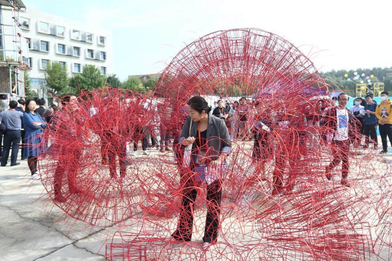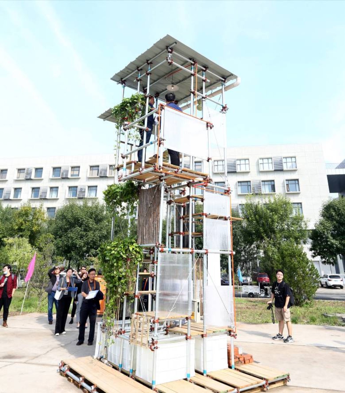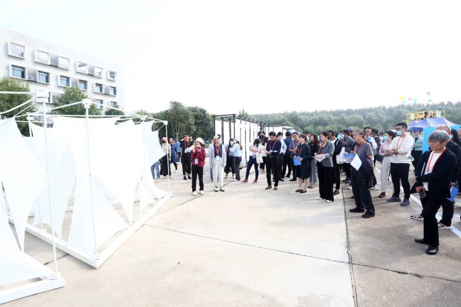 随后,参会领导及各高校师生在北京建筑大学大兴校区下沉广场合影并引导与会人员移步至建造现场评选作品。