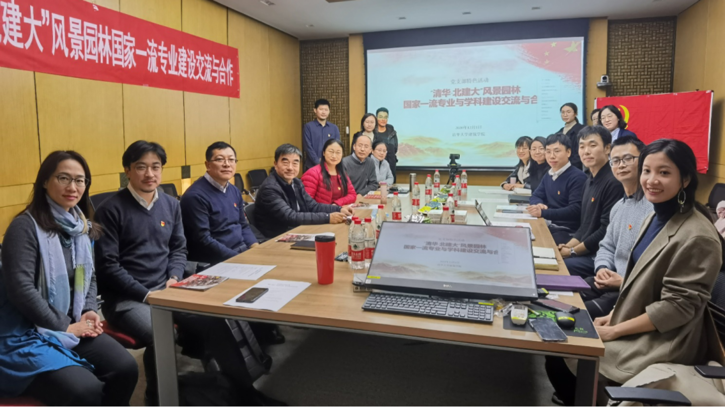 2020年12月1日下午13:00--17:00,为深入学习贯彻习近平总书记重要讲话精神,科学谋划“十四五”工作确保开好局起好步,更好地建设成为国家一流专业和特色鲜明学科,北京建筑大学斗地主游戏-单机斗地主下载 风景园林学系教工党支部与清华大学建筑学院景观学系党支部组织开展了特色主题党日活动,活动主题通过党建赋能、支部共建的方式,围绕风景园林国家一流专业和学科建设交流与合作展开。活动在清华大学建馆会议室和景观学系会议室顺利举。