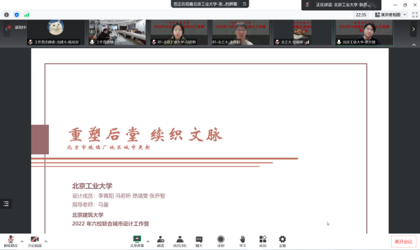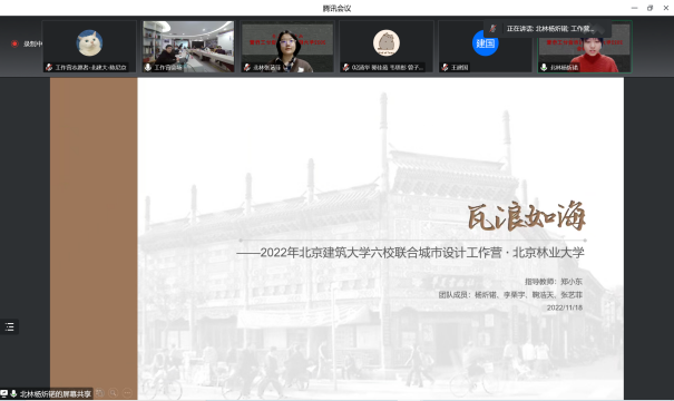 联合主办的“北京建筑大学2022年六校联合城市设计工作营”答辩会,在西城区赵登禹路42号北京老城保护更新基地线下和腾讯会议同步举行。