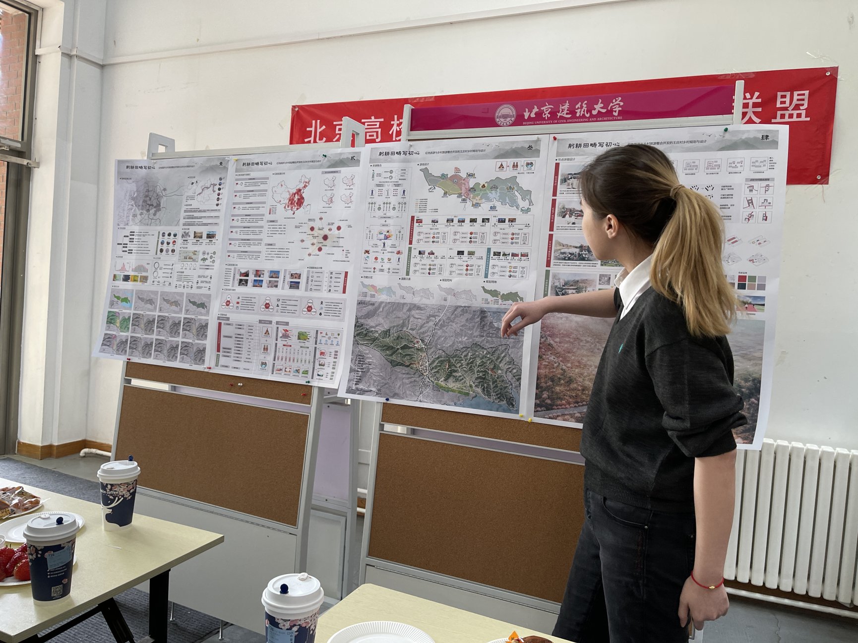 汇报按照设计地块的不同分为王庄村和北甸子村两组进行。同学们对照图纸依次汇报当前的工作内容和方案设计,各位老师也从方案主题、策略设计、图纸表达等方面对同学们的工作成果进行点评,并提出了后续的改进意见。