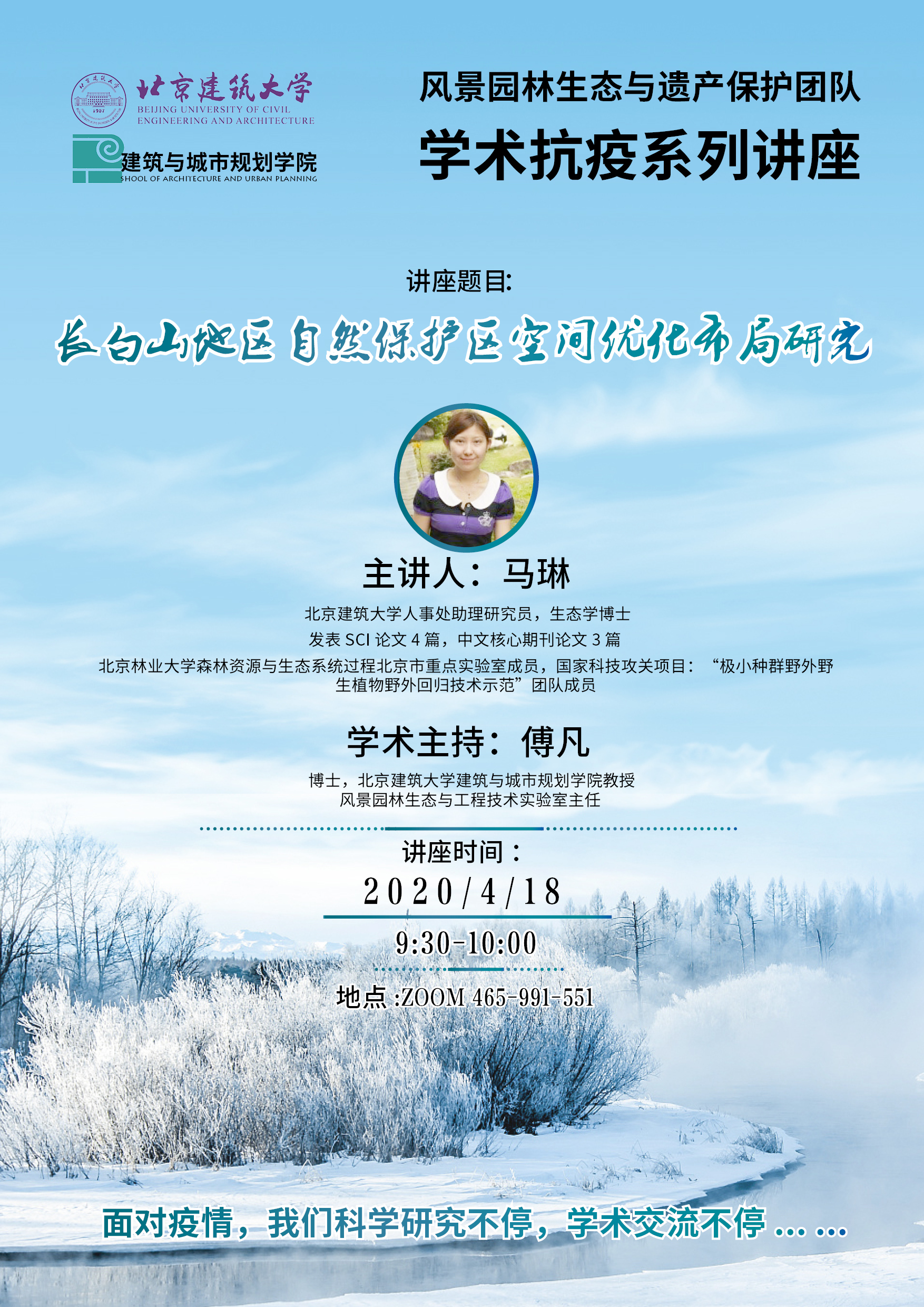 4月18日上午,北京林业大学森林资源与生态系统过程北京市重点实验室成员,北京建筑大学人事处助理研究员马琳博士应邀在ZOOM平台上以“长白山地区自然保护区空间优化布局研究”为主题展开分享,斗地主游戏 师生和校外学者共40余人参与本次线上学术交流活动。