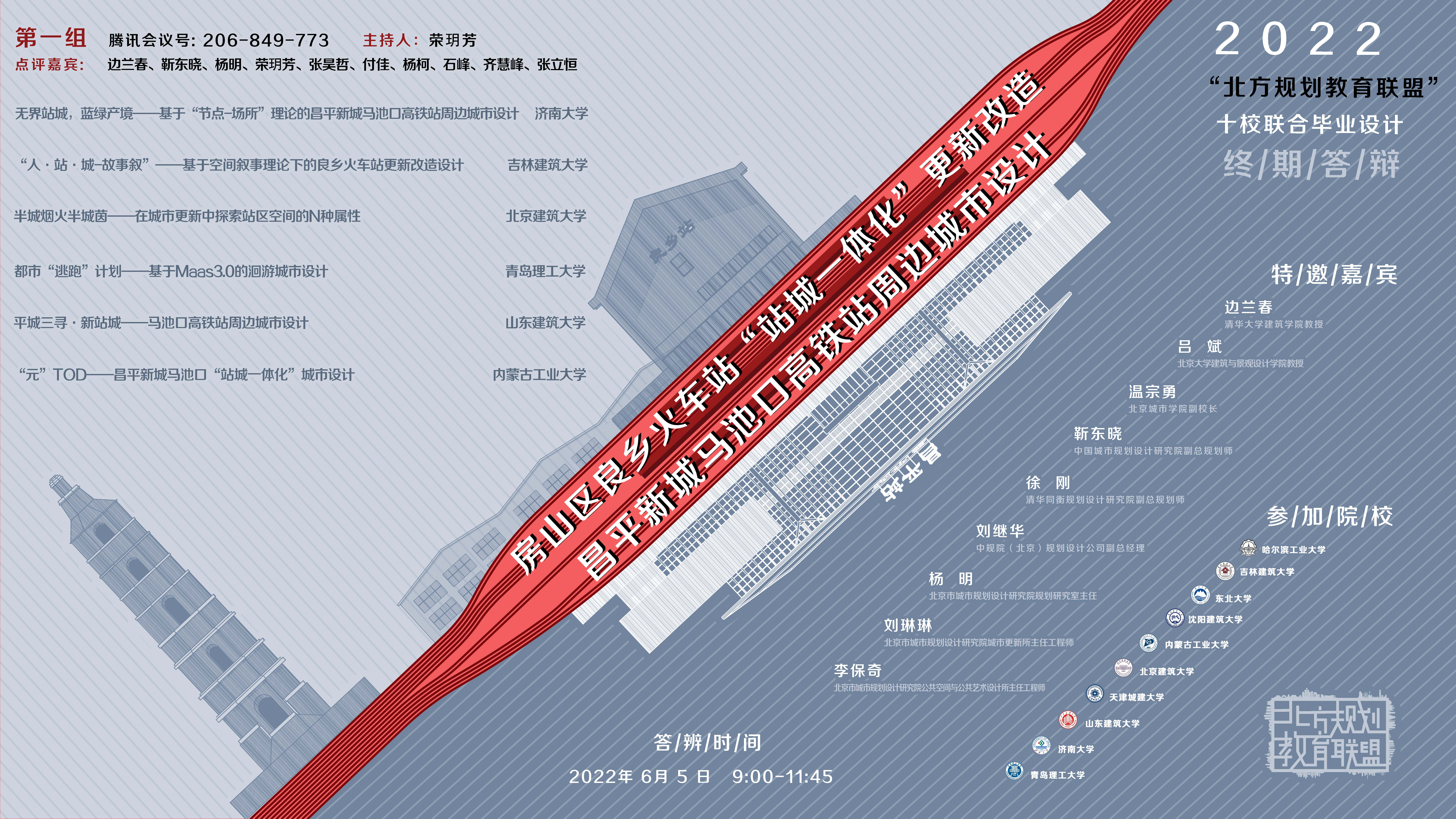 本年度联合毕业设计主题是北京市轨道交通站点周边区域城市更新,包括两处基地,分别是“房山区良乡火车站站城一体化更新改造”和“昌平新城马池口高铁站周边城市设计”,关注城市更新和站城一体化等焦点话题。