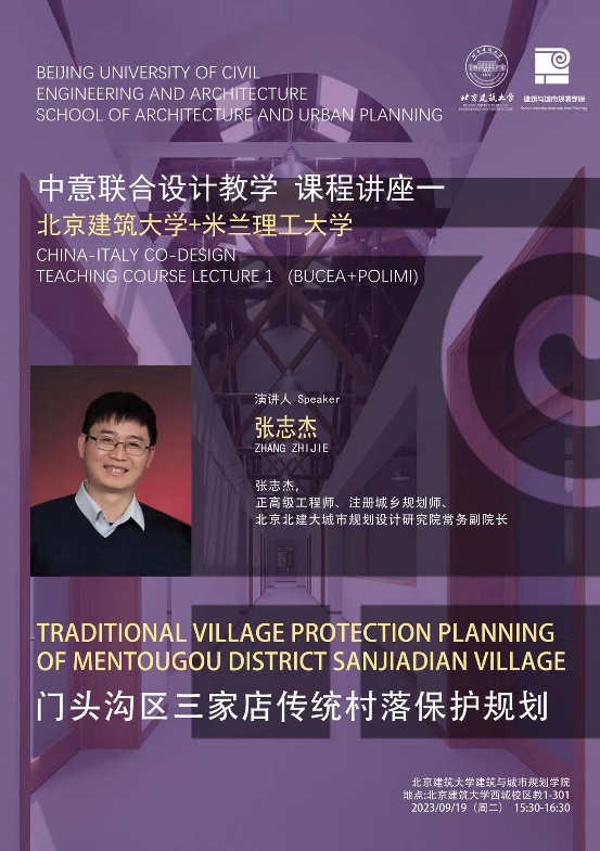 2023年9月19日下午,由北京建筑大学与意大利米兰理工大学合作开展的研究生设计课联合教学课程讲座在教一-301顺利举办。此次讲座的主讲人是北京北建大城市规划设计研究院常务副院长张志杰老师。张老师围绕“北京市门头沟区三家店传统村落建设发展”的主题,从三家店传统村落的规划背景、控制地带、发展方式和规划落实等方面进行了充分讲解。北京北建大城市规划设计研究院武全书记受邀出席讲座,课程组教师李春青教授、李露副教授,以及各专业硕博研究生约50人共同参加了讲座。讲座由李春青教授主持。