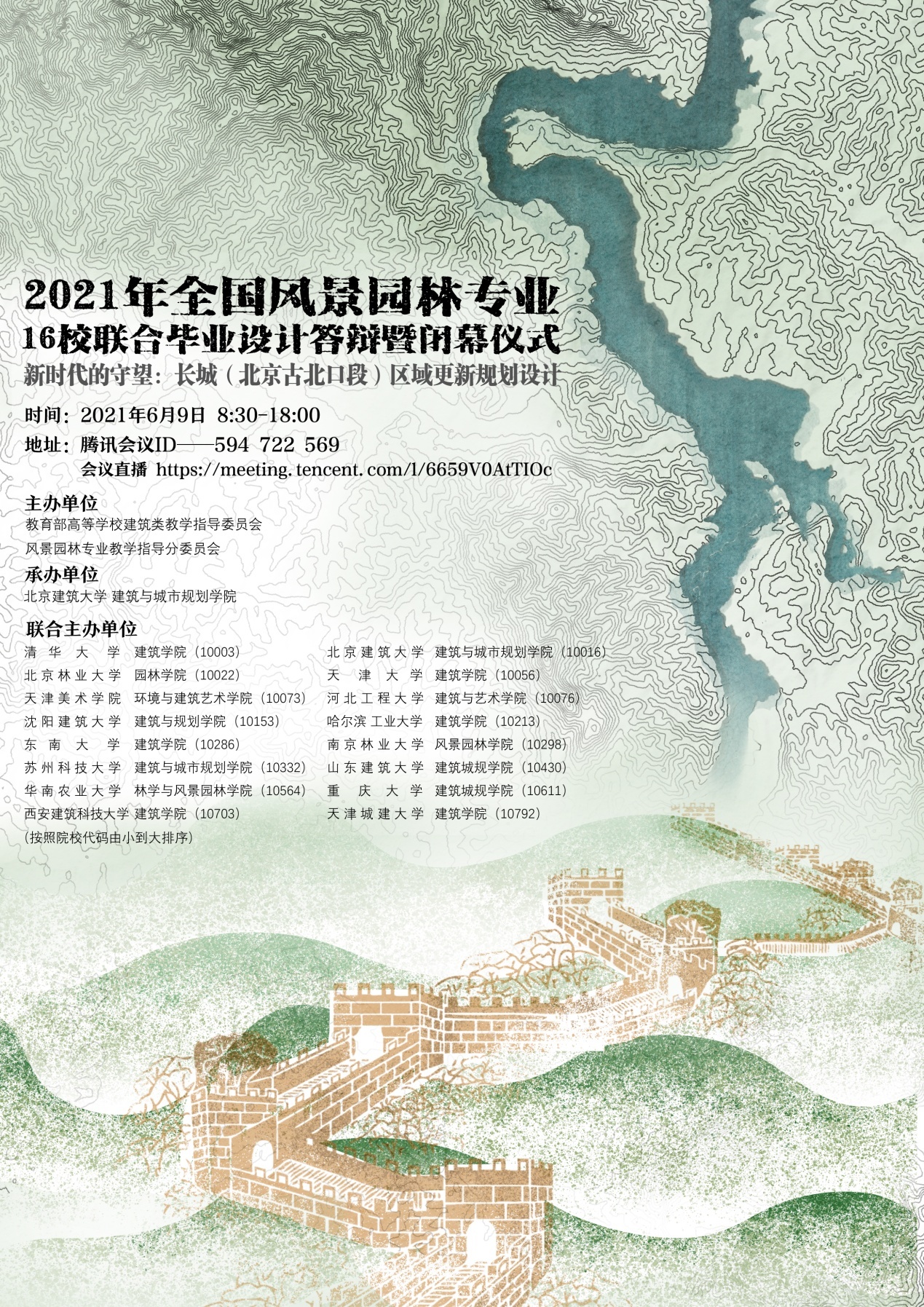 为提高风景园林本科人才培养质量,同时持续推进教学改革,北京建筑大学将继2020年后,持续承办2021年风景园林专业16校联合毕业设计。旨在为全国的风景园林专业高校构建更加广泛、更加开放的交流平台,集全国风景园林同仁的智慧共同服务首都生态文明建设。