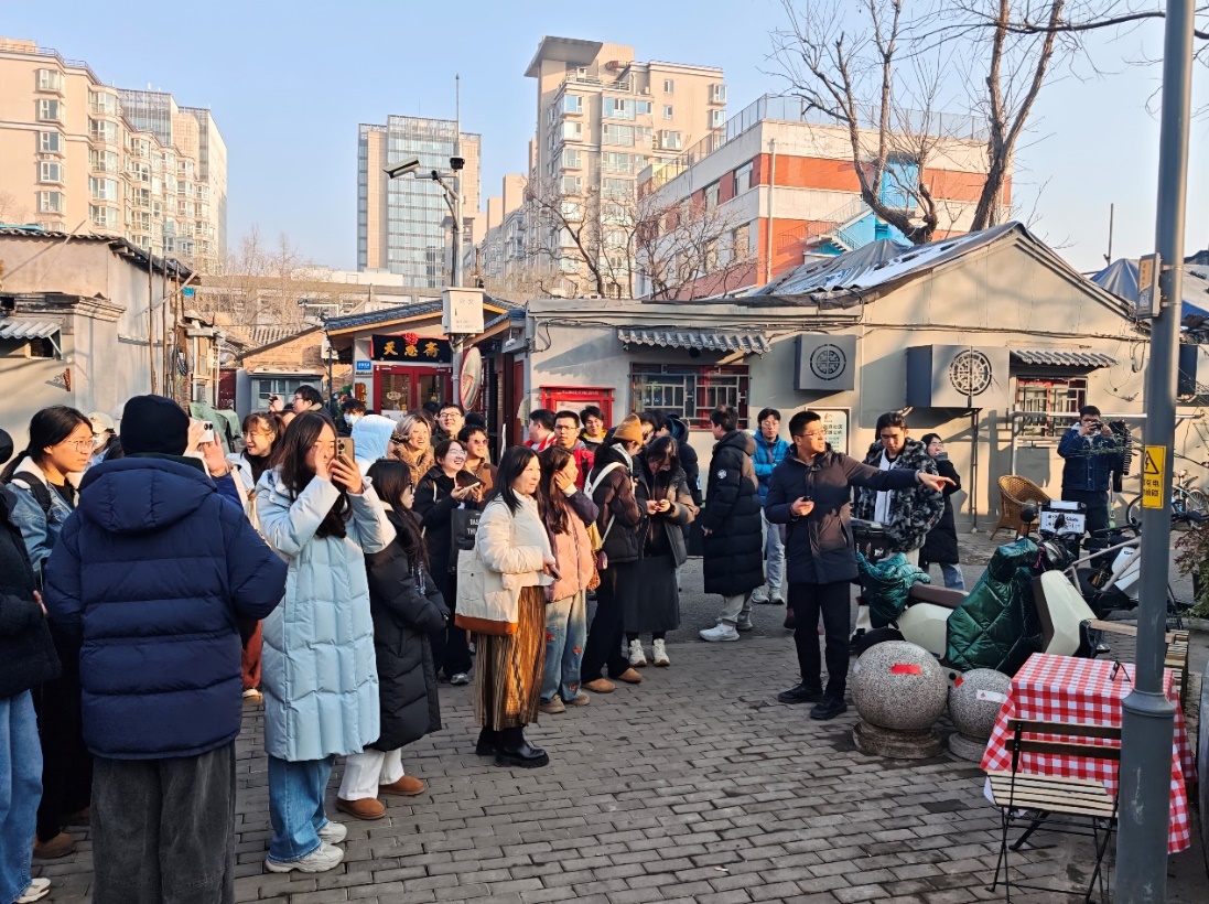 在调研过程中同学们深入西砖胡同进行实地踏勘,边走边看、边听边问,用脚步丈量街巷尺度,用镜头与笔触记录下传统风貌、院落空间、公共环境以及充满烟火气的生活场景。在已实施更新的共生院内,金恒丰公司项目负责人进行现场教学,详细讲解了从“申请式退租”到“适应性利用”的实际运作过程、技术难点以及后续可持续运营面临的挑战,让大家深刻体悟到,老城更新不仅是一项物质空间改造,更是一场精细的社会治理与长效的文化保育,必须多专业协同发力。