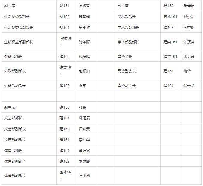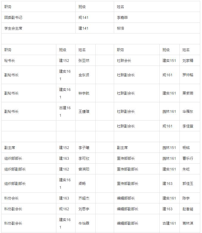 建筑学院2017-2018学年新一届学生会及团委干部,是通过个人自荐,经由学生会全体成员投票表决,并由相关老师和学生会主席团考察、讨论产生。并上报团委批准,最终进入试用期的考察阶段。公示如下: