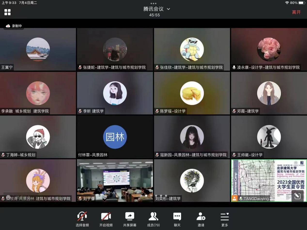 5日上午,建筑学、城乡规划、风景园林、设计学、建筑遗产保护5个学科专业共组成7个考核小组,分别由欧阳文教授、郝晓赛教授、杨一帆副教授、孙立教授、丁奇教授、傅凡教授、赵希岗教授担任组长,各学科骨干教师孟璠、商谦、铁雷、甘振坤、黄庭晚、张琳、王兵、马全宝、齐莹、贺鼎、陈志端、李勤、石炀、单彦名、张颖异、贾梦圆、刘玮、王婷、王如欣、顾月明、张学玲、徐海韵、王瑞琦、张笑楠、韩风、阚玉德、边谦等教师,线上线下同步开展夏令营考核工作,对营员的专业知识、综合素质、英语听说能力等进行全面考查。在考查过程中,营员们普遍表现出优异的综合素质和专业能力,以及对于北建大斗地主游戏-单机斗地主下载 的关注。考核小组教师也以高度的热情与营员开展学术交流切磋。经过考核,共选拔出40名营员授予“优秀营员”称号。