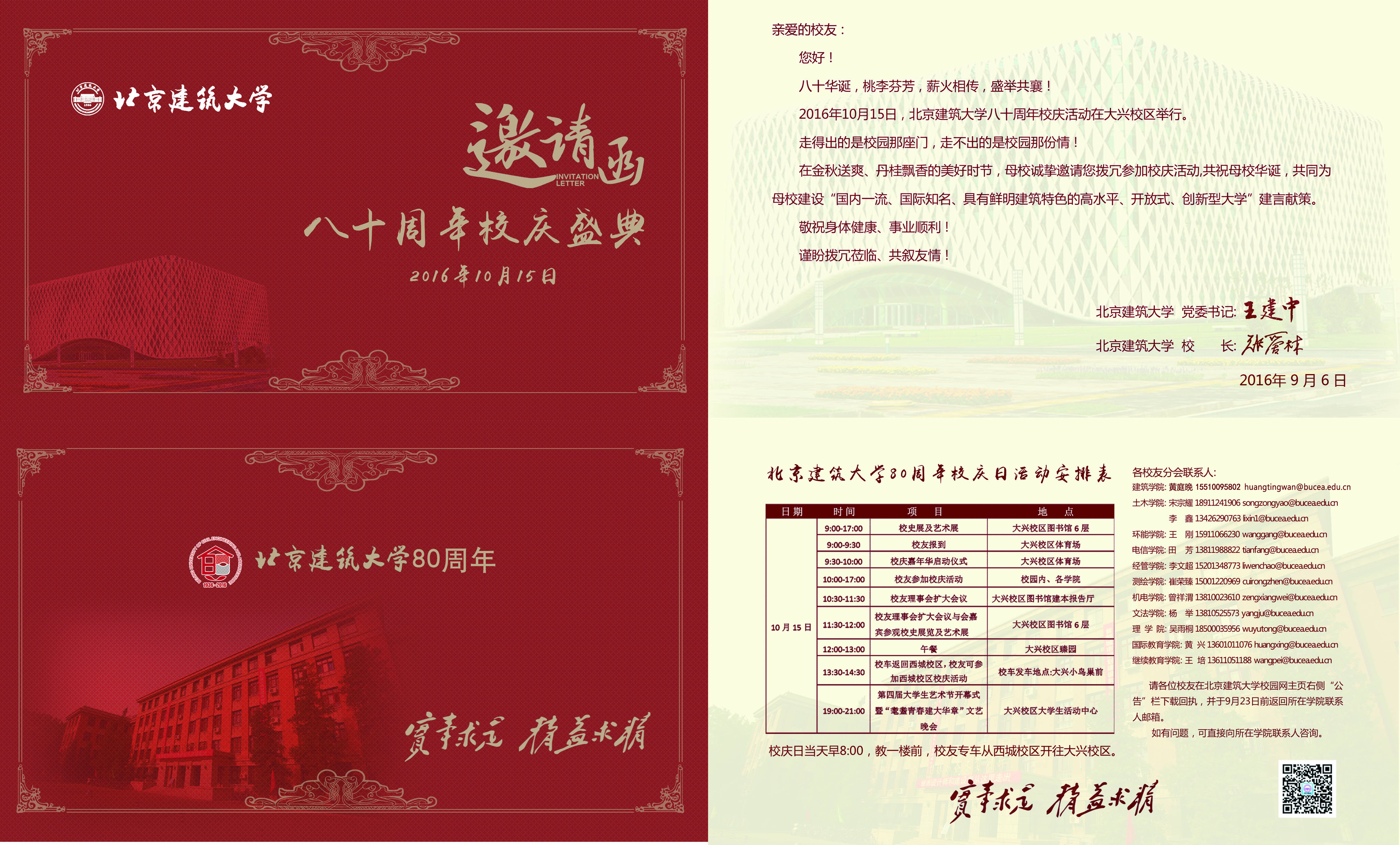 2016年10月15日将迎来北京建筑大学80周年校庆。