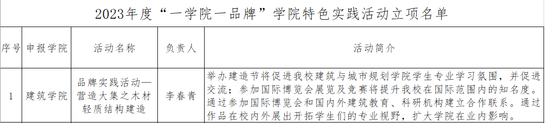 根据学校教务处通知,建筑学院获得2023年度“一学院一品牌”学院特色实践活动立项