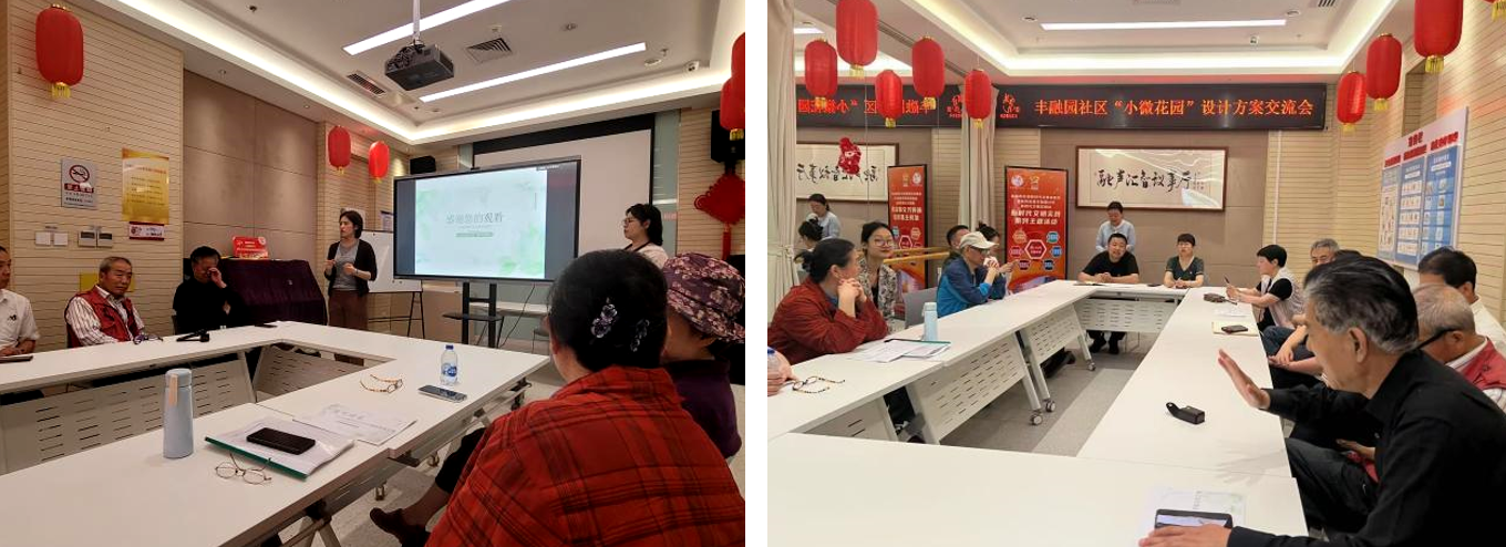 5月7日,团队在西城园林局进行方案汇报及研讨。专家强调了植物景观的时序性呈现,并希望增强居民与微花园的互动性。风景园林系的师生们迅速响应,凭借扎实的专业素养,优化了植物配置方案,确保微花园实现“三季有花、四季成景”的生态美学效果。