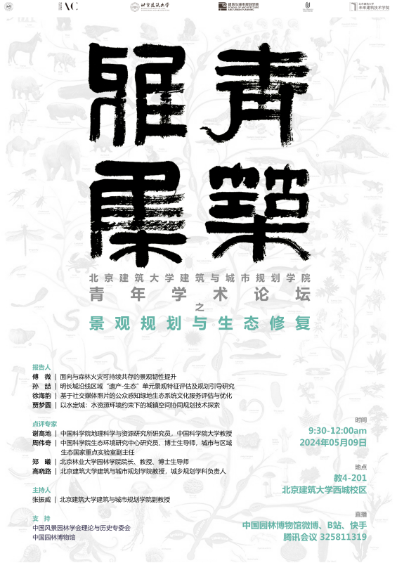 2024年5月9日上午,由北京建筑大学斗地主游戏-单机斗地主下载 风景园林系承办的“青筑雅集”系列青年学术论坛在斗地主游戏 西城校区顺利召开。本次“青筑雅集”分为“风景园林历史理论”与“景观规划与生态修复”两个论坛,体现出建院青年学者在学科融合视角下对风景园林学科发展的前沿探讨。此次活动得到中国风景园林学会理论与历史专委会、中国风景园林学会青年工作委员会和中国园林博物馆大力支持,在中国园林博物馆的线上平台上进行转载直播,观看人数达200余人。