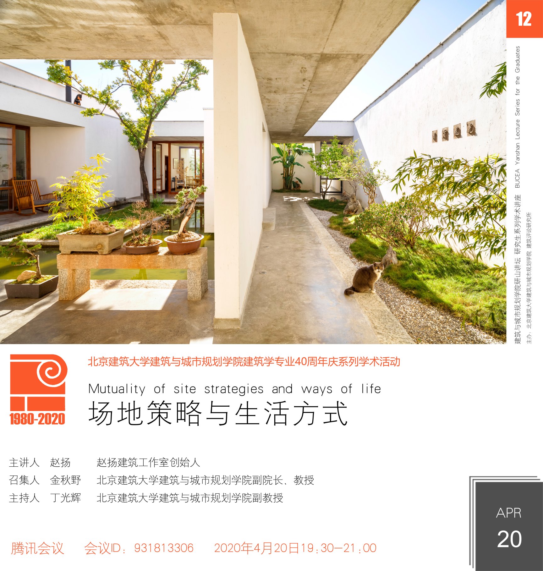 “研山讲坛”创办于2019年9月,是建筑学院以研究生交流为目的的系列学术活动,活动由建筑学院副院长金秋野教授召集。学术活动主要采取讲座、交流形式,邀请国内外知名建筑学者和一线建筑师,分享研究成果、实践作品以及设计思想,促进在校研究生开阔视野、树立职业目标,搭建具有北京建筑大学特色的研究生学术交流平台。2020年是北京建筑大学建筑学专业创办40周年,“研山讲坛”作为“40周年庆系列学术活动”的重要内容之一,也将不断探索完善,发挥其学术号召力。