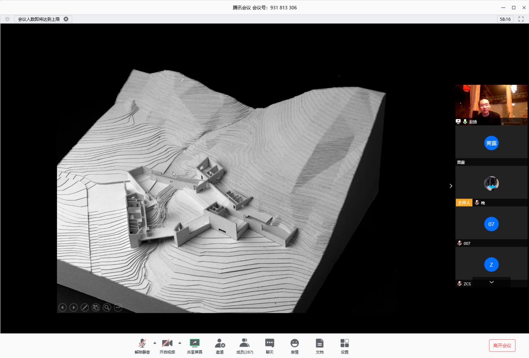 赵扬回顾了其建筑实践的多个阶段与设计作品,从概念构思、方案深化、细部构造等方面,向线上听众阐述他对场地策略与生活方式的理解。赵扬将设计看做是“求道”的过程,提出“敞开心扉”是建筑学科的未来希望,且建筑师应传承“人文精神”。在自由提问阶段,同学们踊跃发言,提出了关于生活方式的表达、未建成的设计等问题,赵老师逐一详细解答。